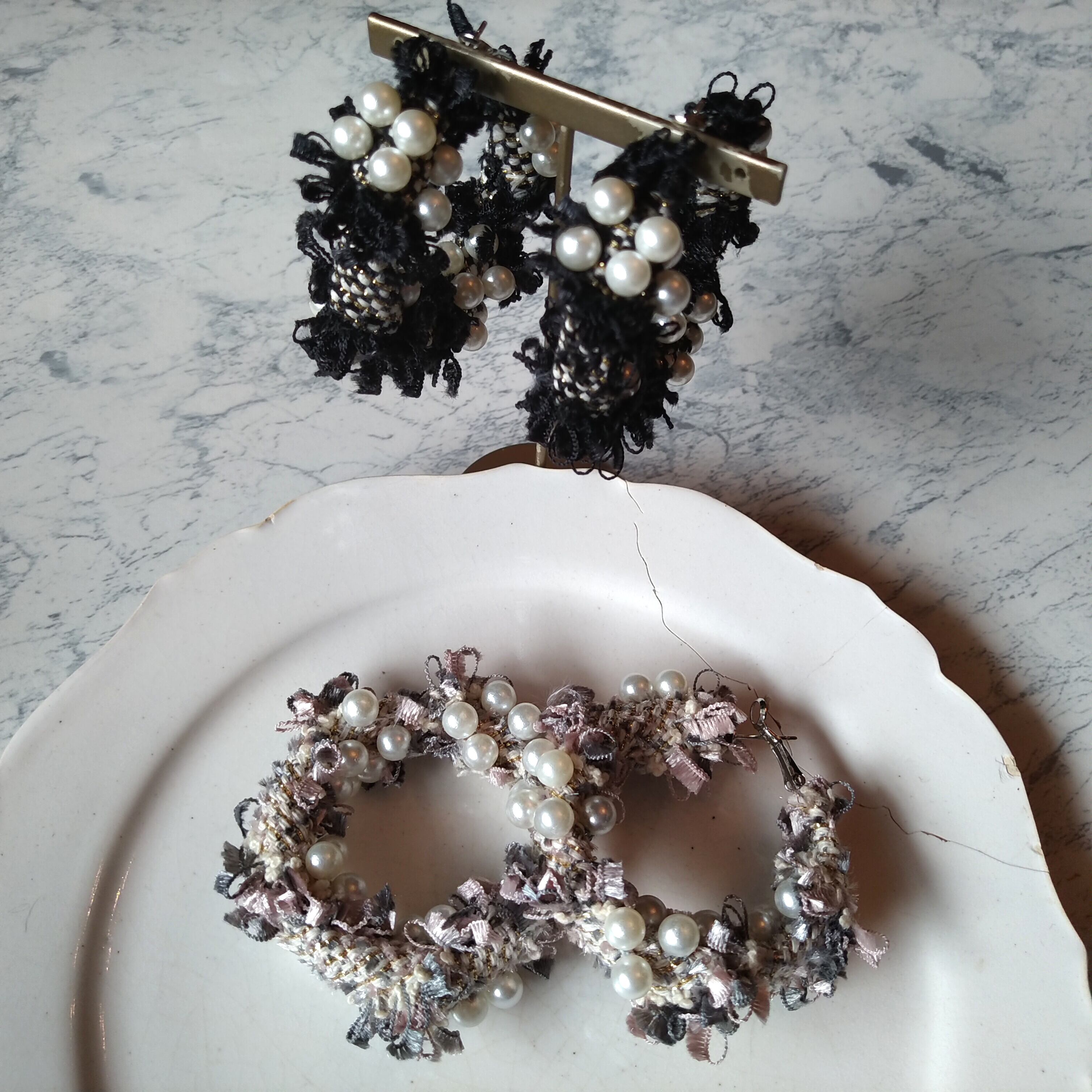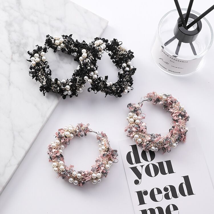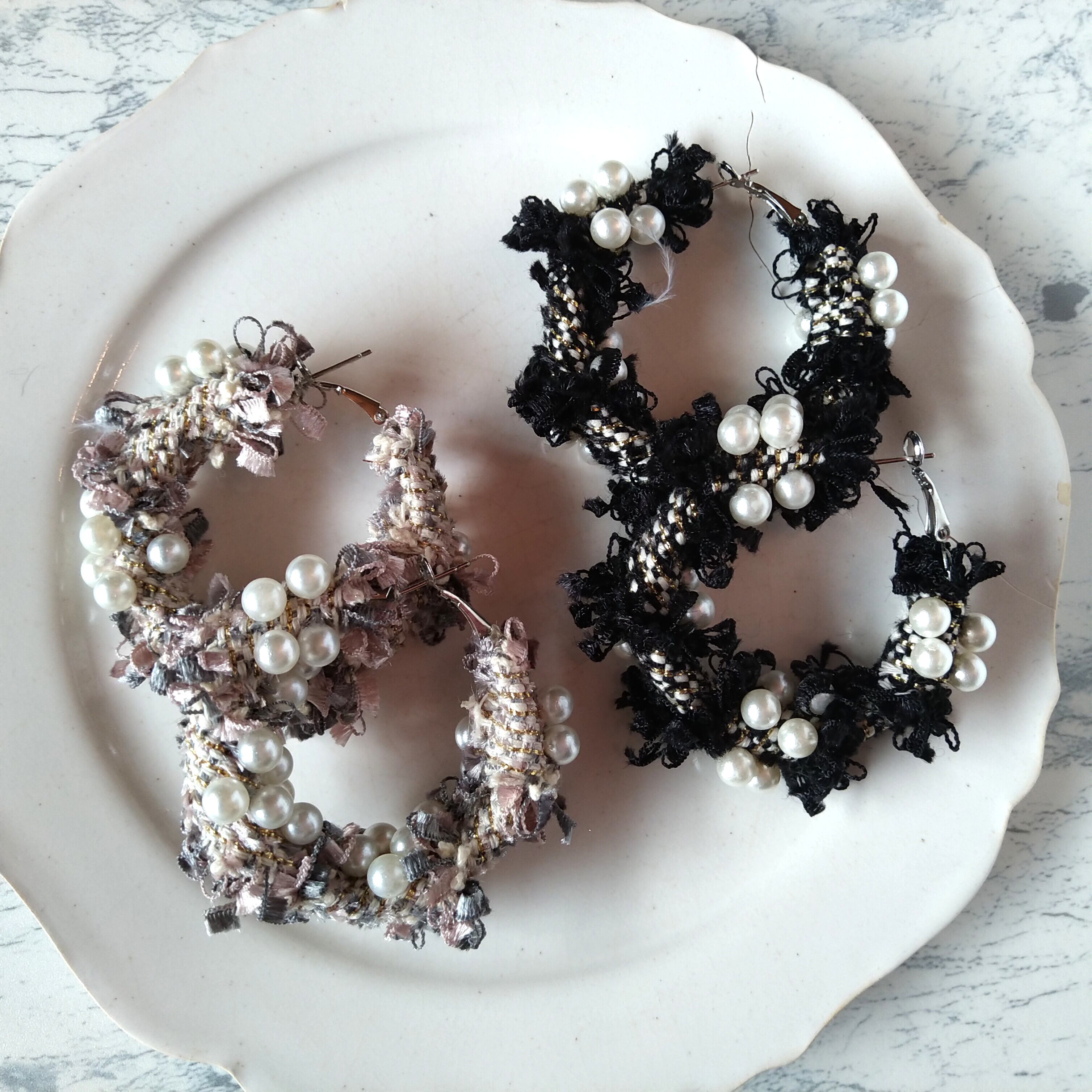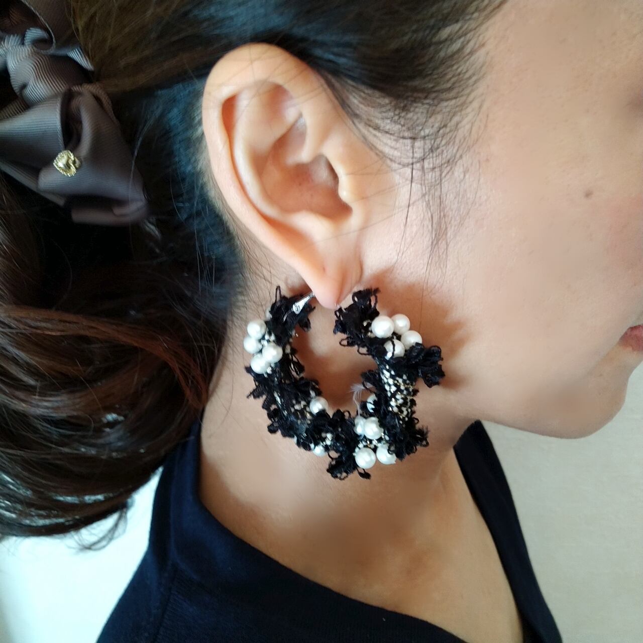 ツイード パール フープピアス ブラック クリスマス 誕生日 プレゼント 結婚式 ウエディング 卒業式 卒園式 入学式