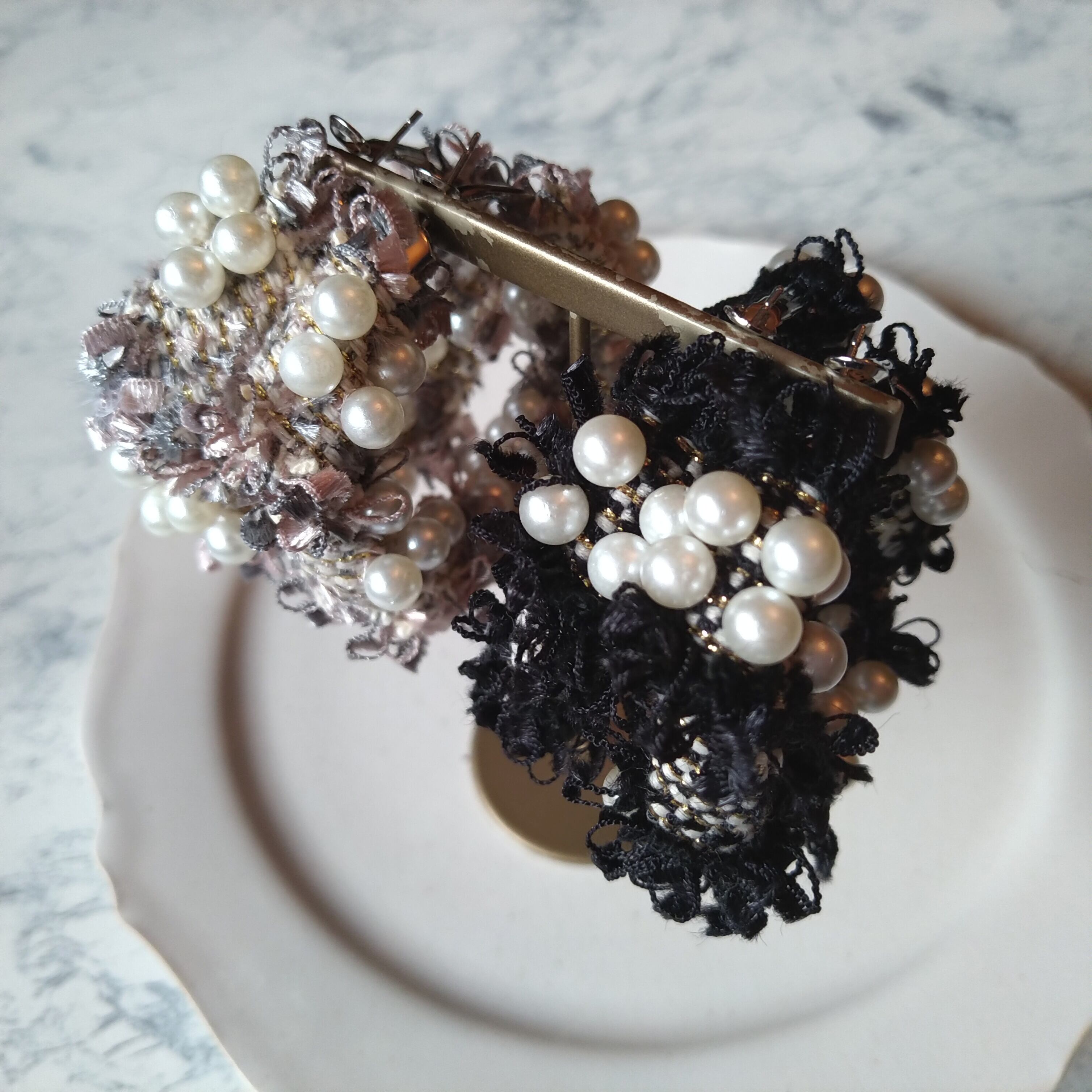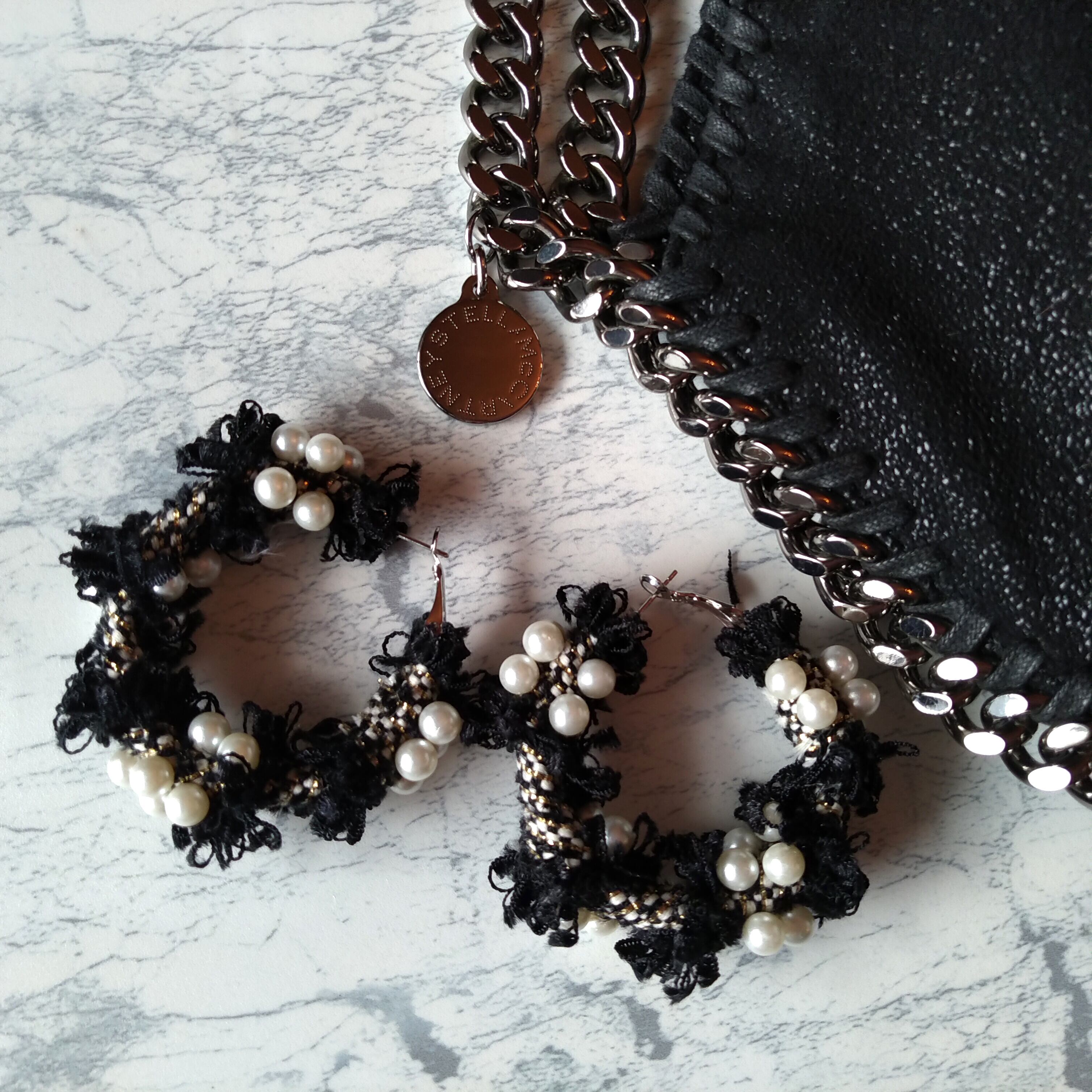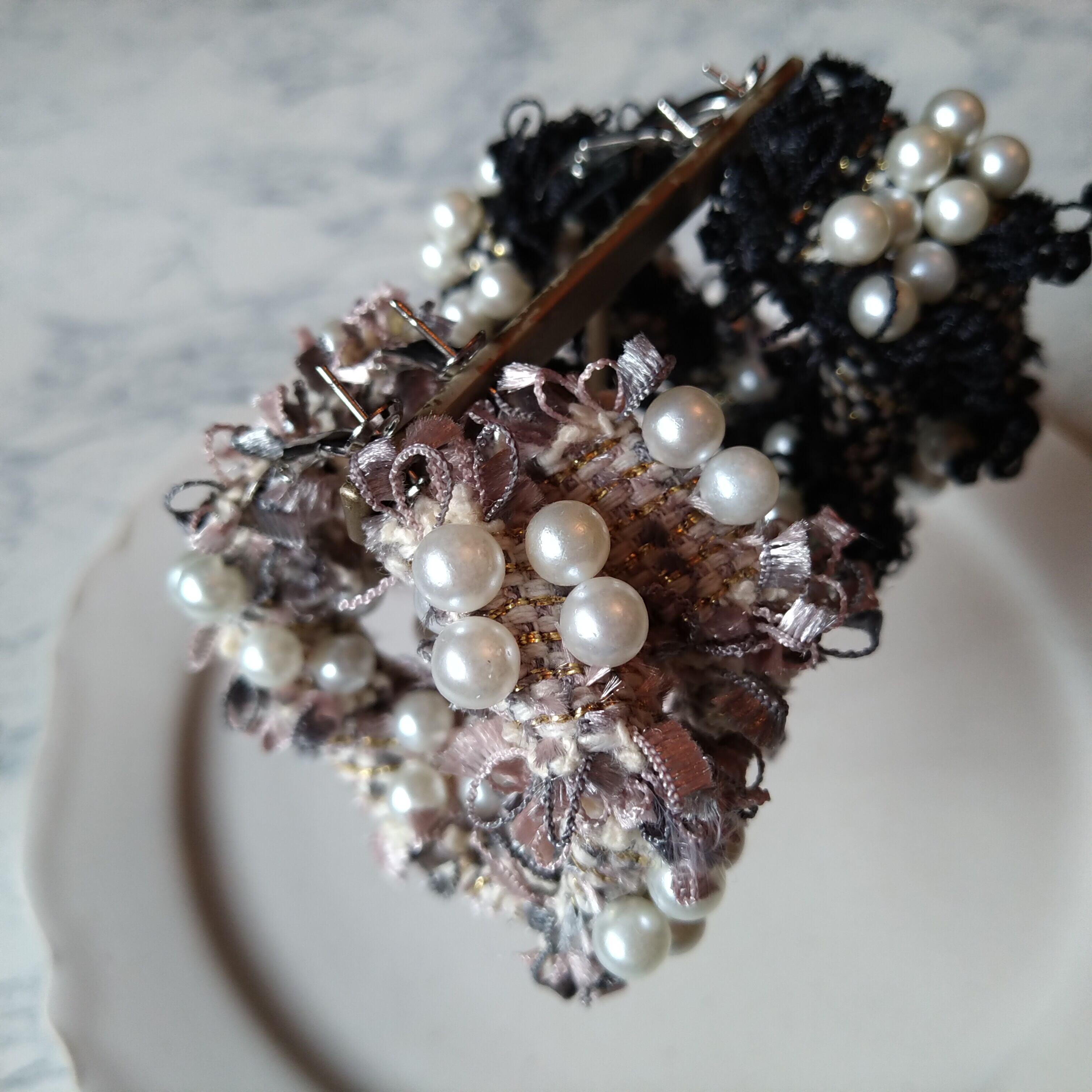 ツイード パール フープピアス ブラック クリスマス 誕生日 プレゼント 結婚式 ウエディング 卒業式 卒園式 入学式