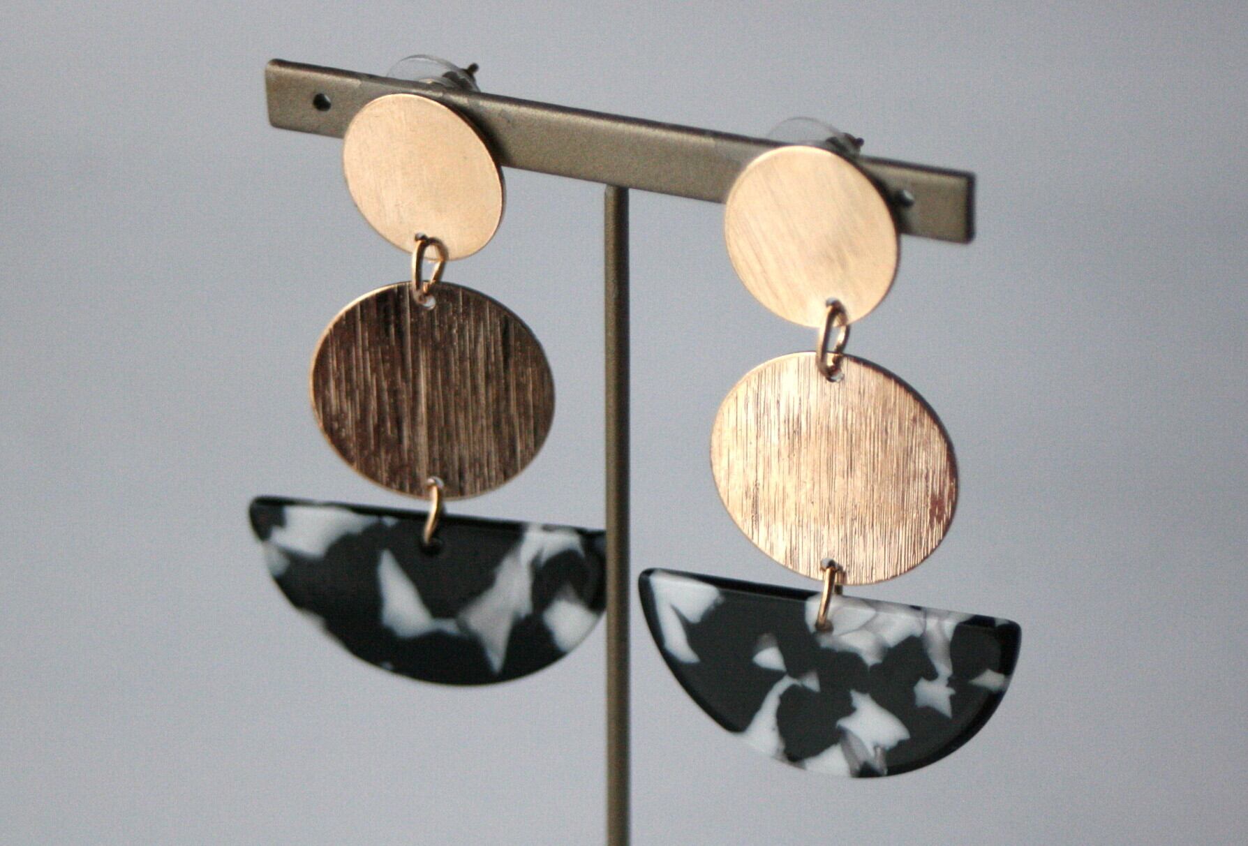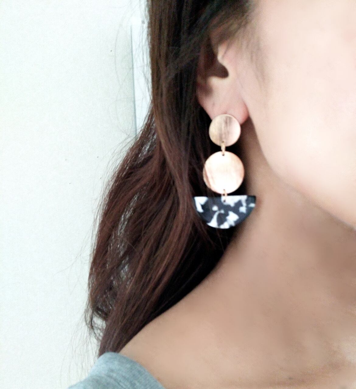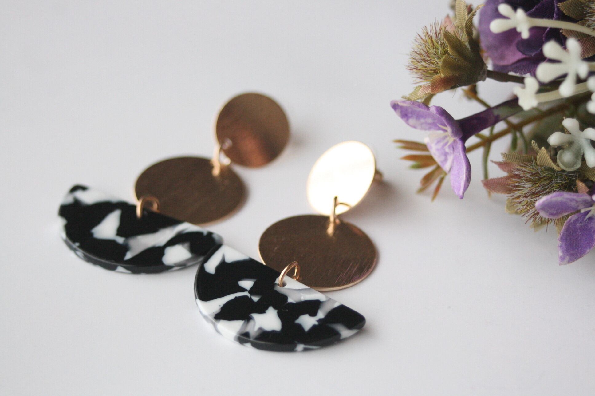 白と黒の鮮やかなコントラストが特徴の、べっ甲モチーフピアス。