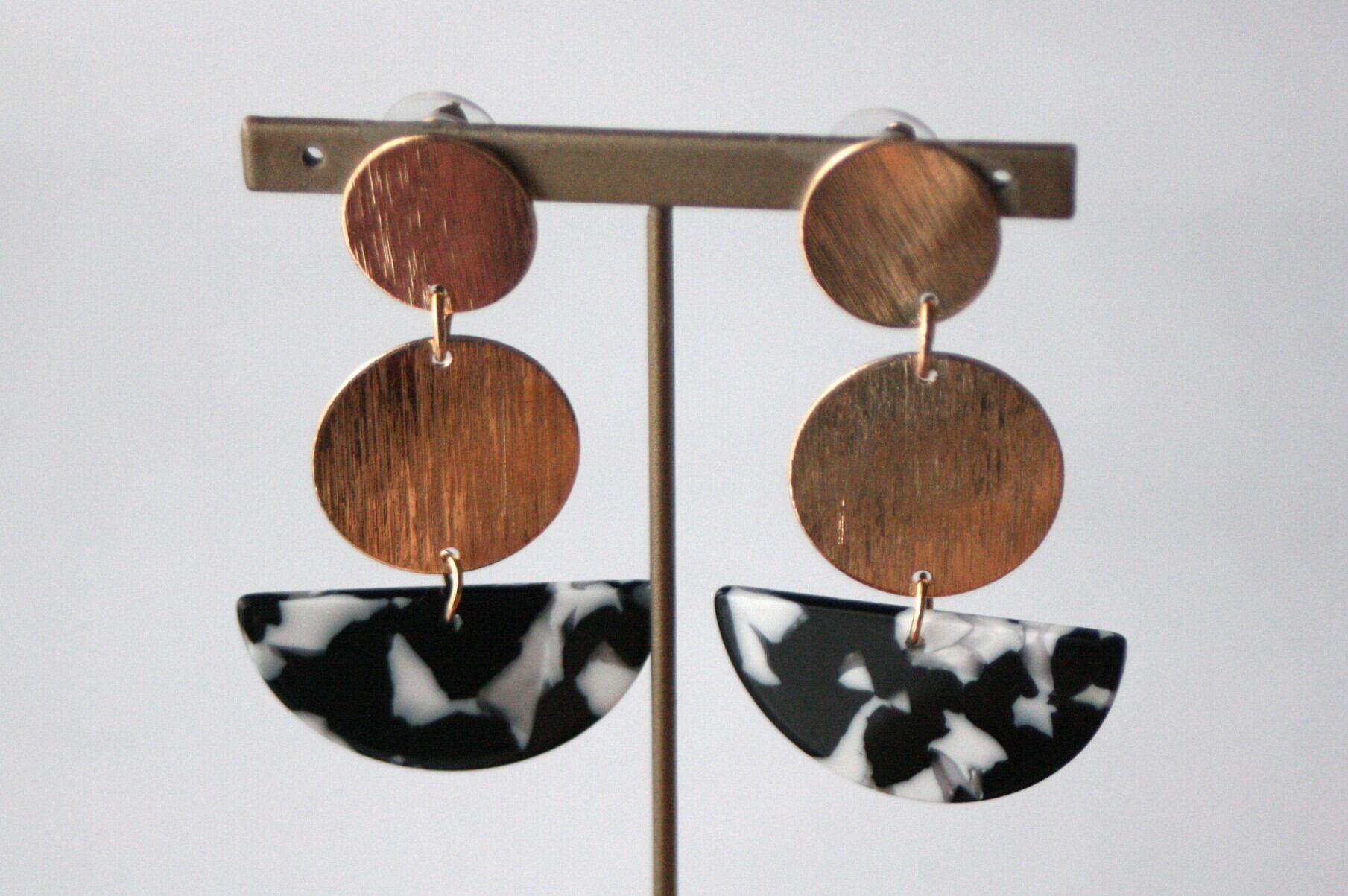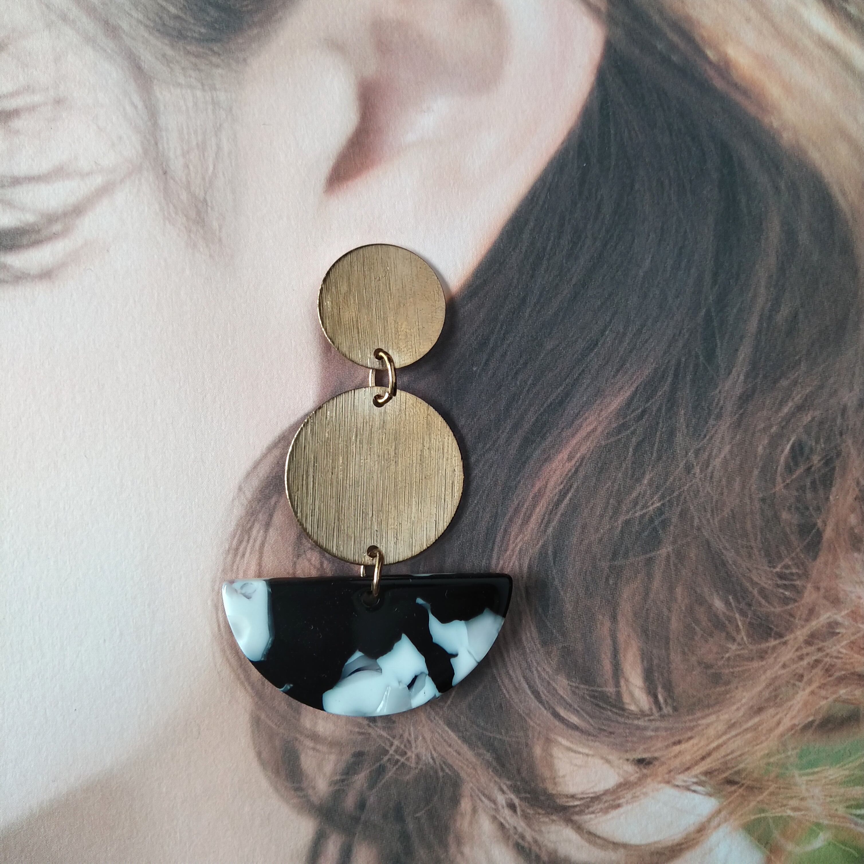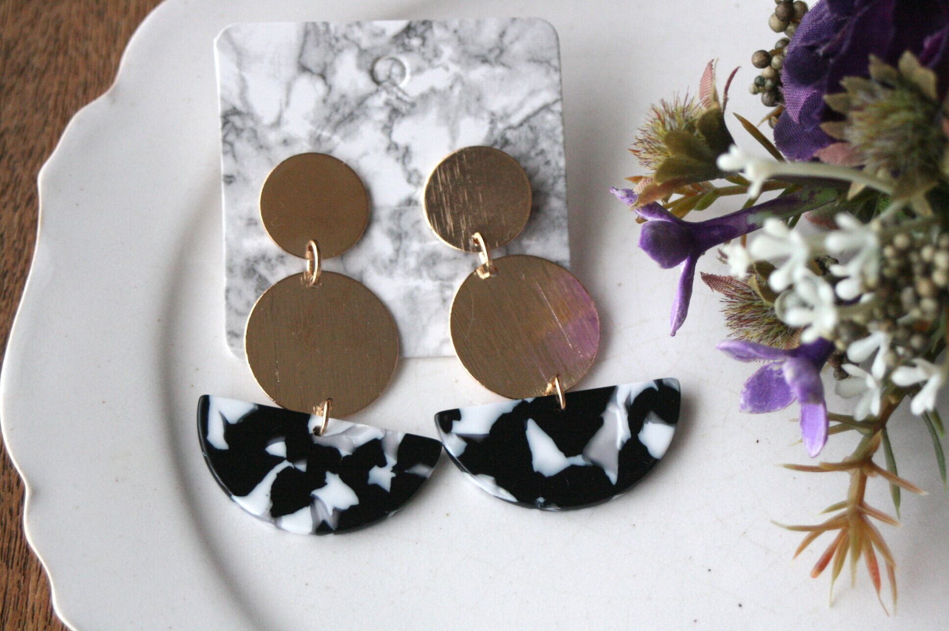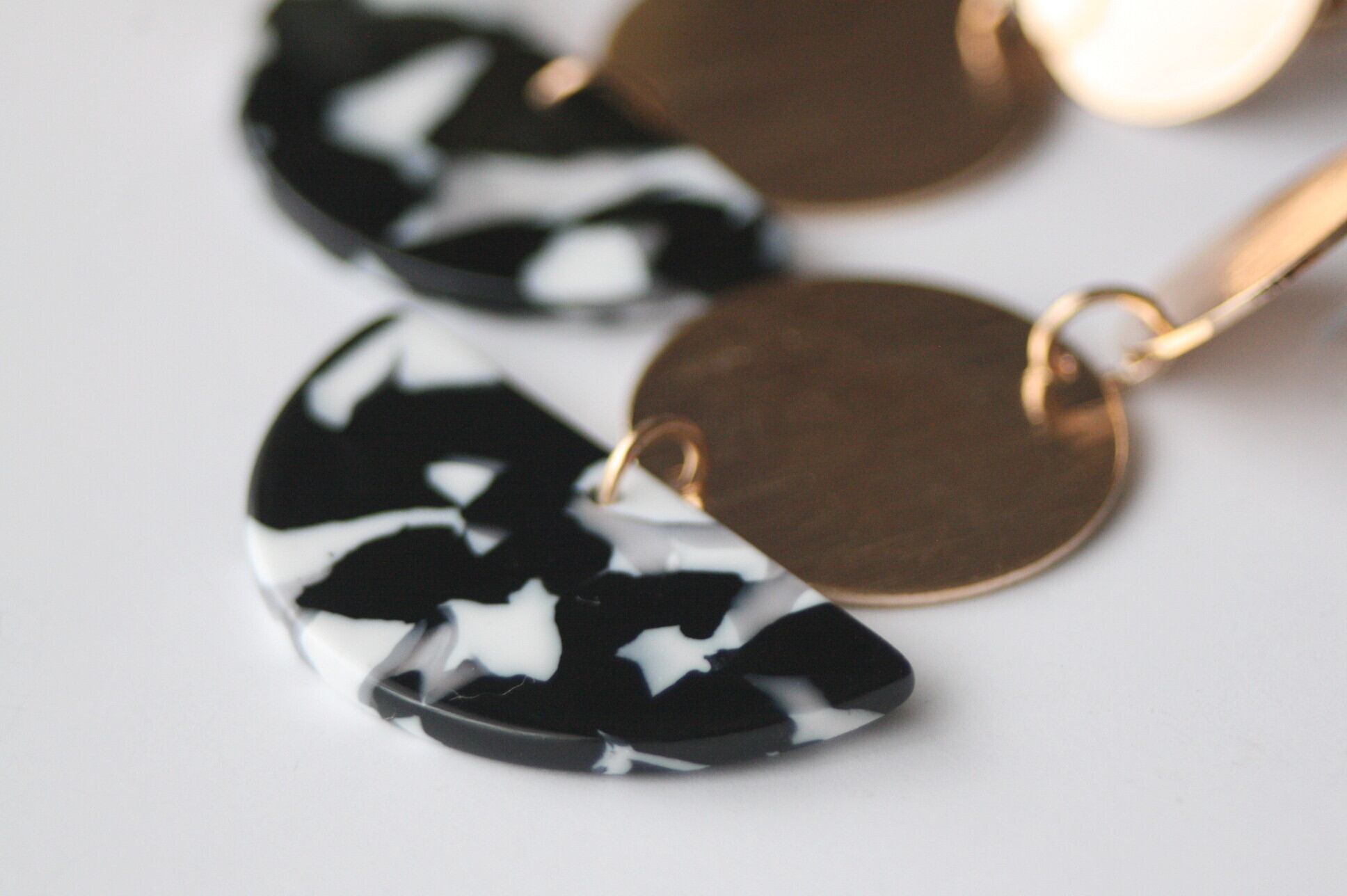 白と黒の鮮やかなコントラストが特徴の、べっ甲モチーフピアス。