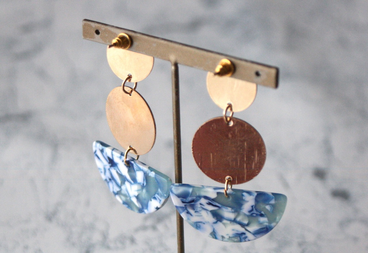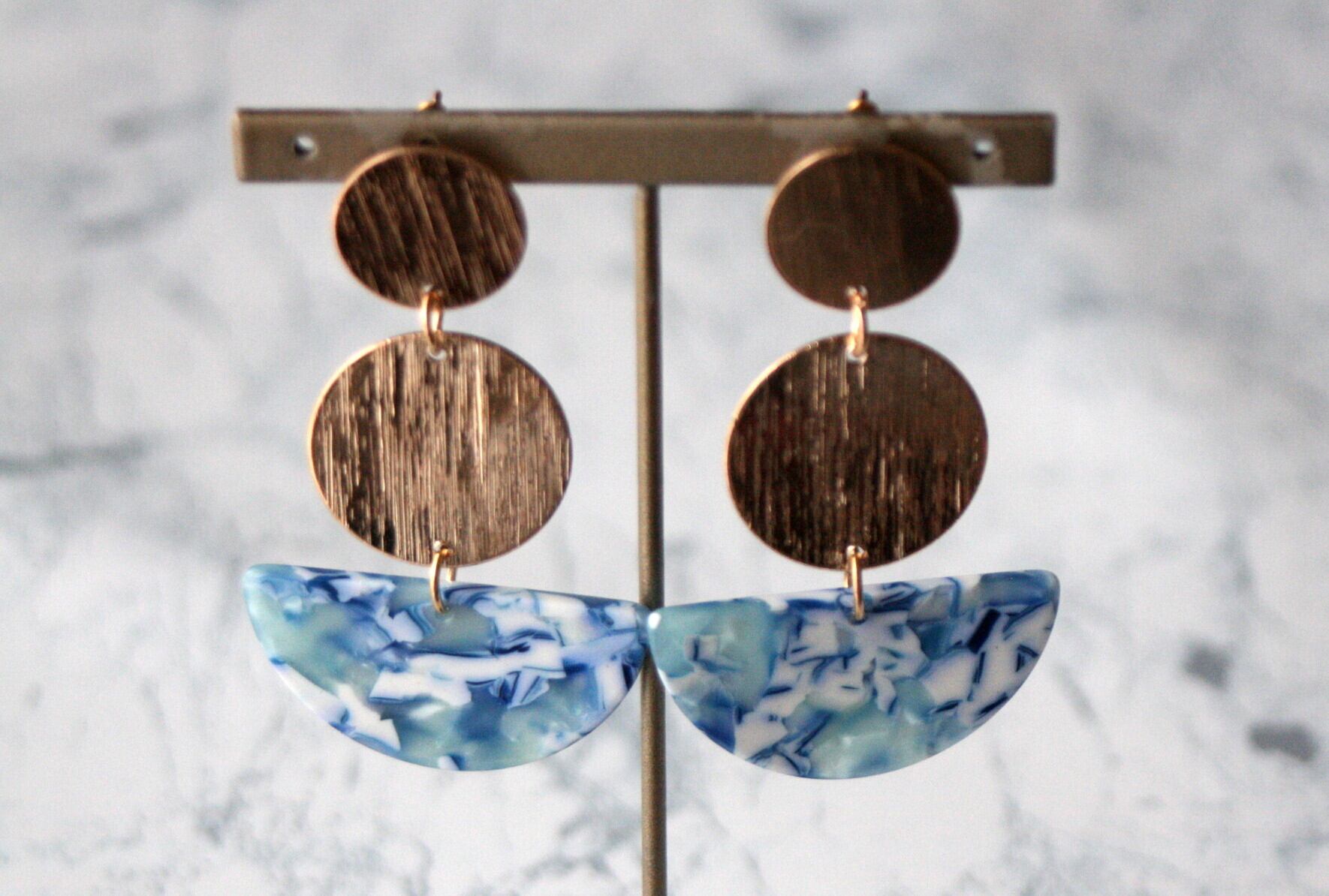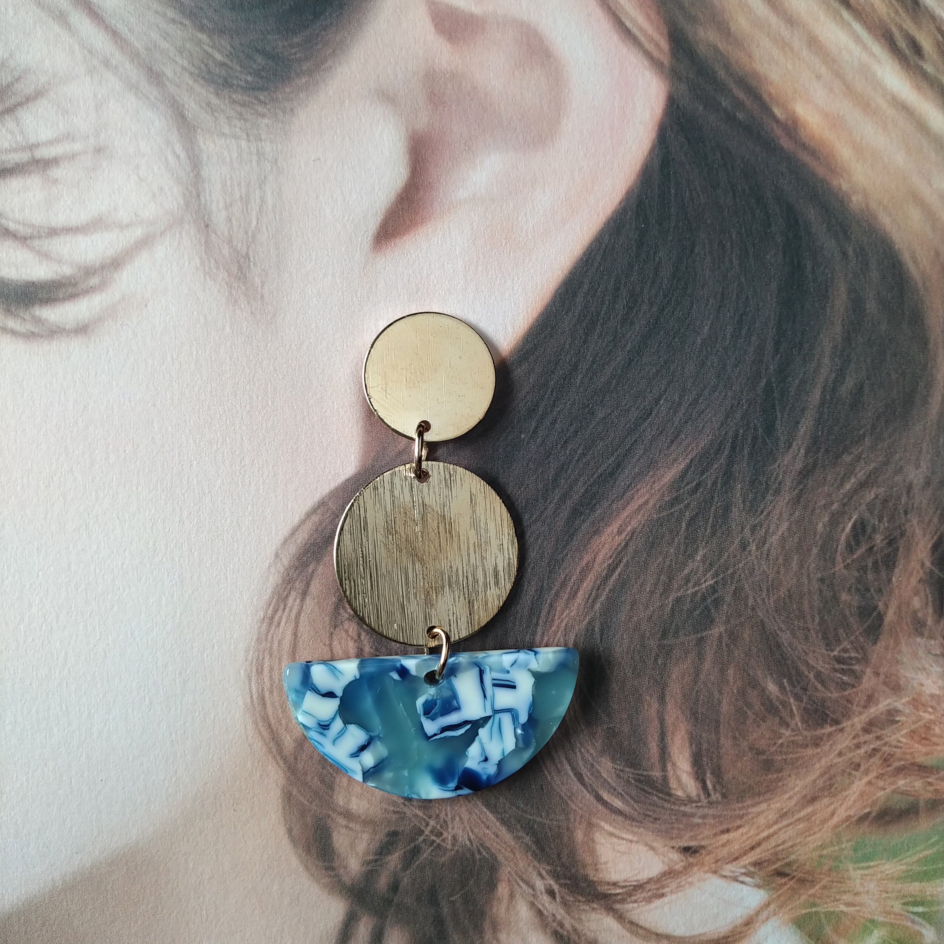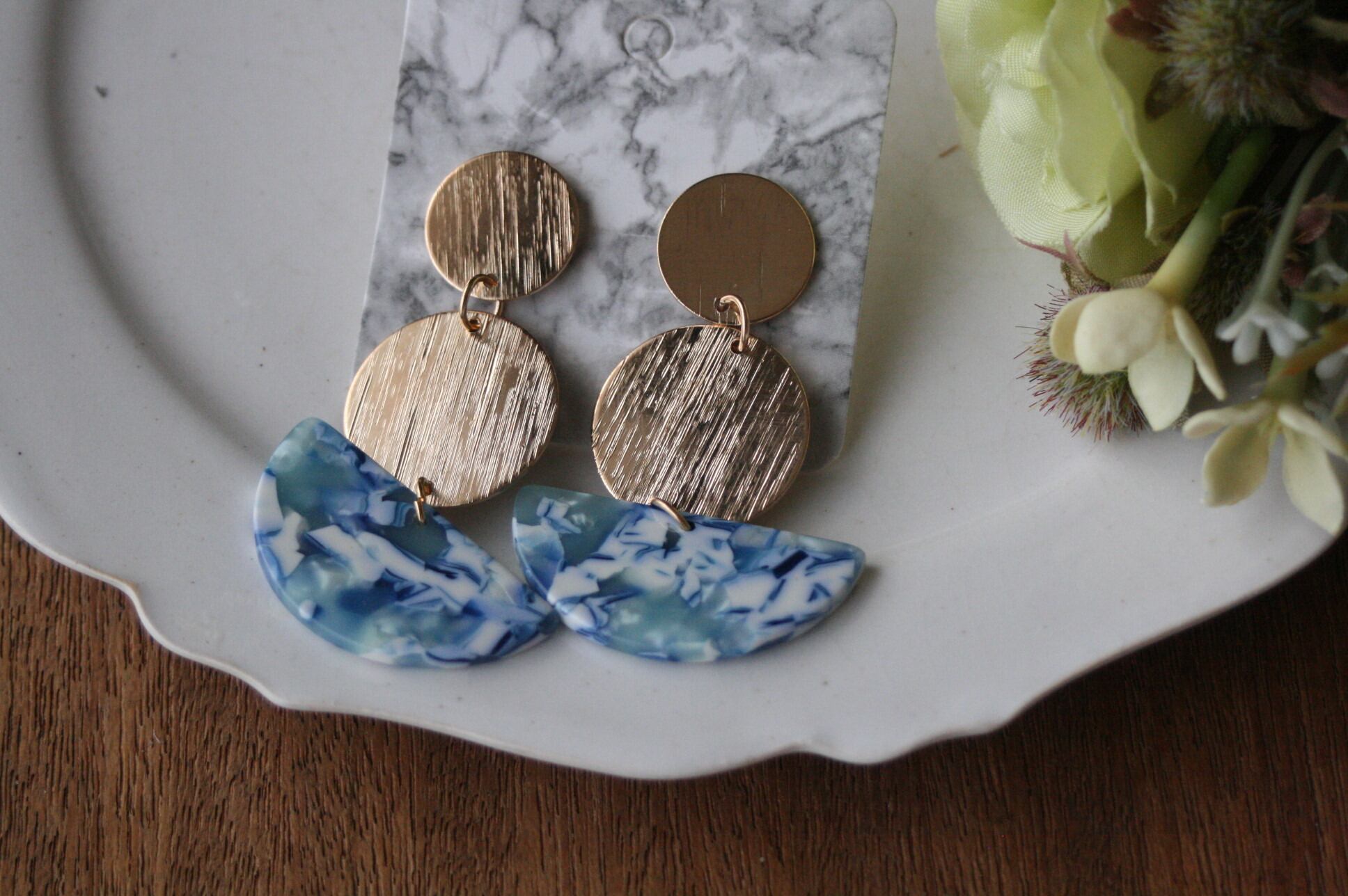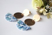白とブルーの鮮やかなコントラストが特徴の、べっ甲モチーフピアス。