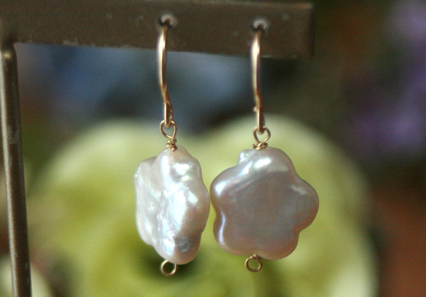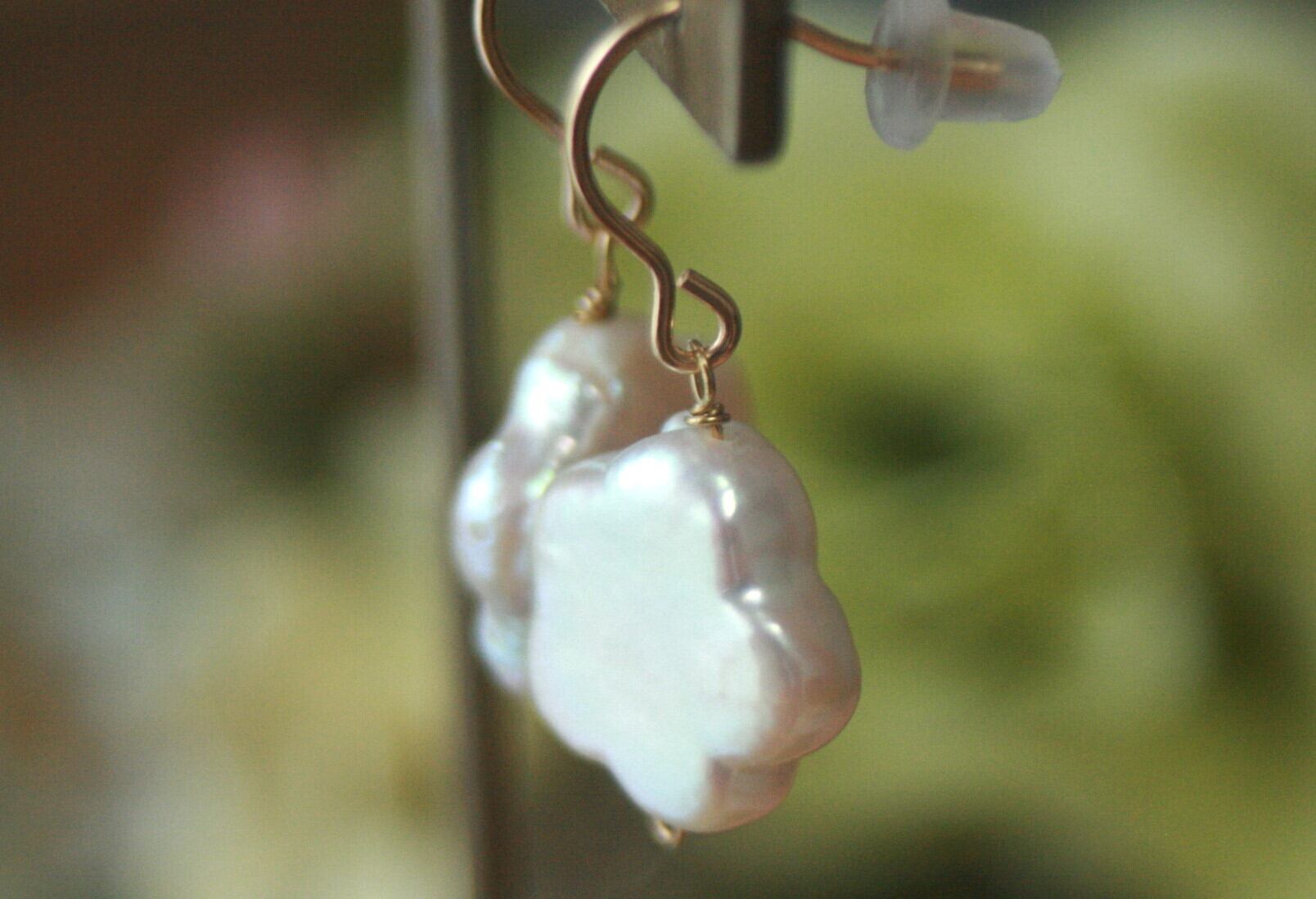 卒業式・入学式にも*14kgf淡水パール フラワーピアス 白 結婚式 パール ウエディング ブライダル 真珠 卒園式 入園式 二次会