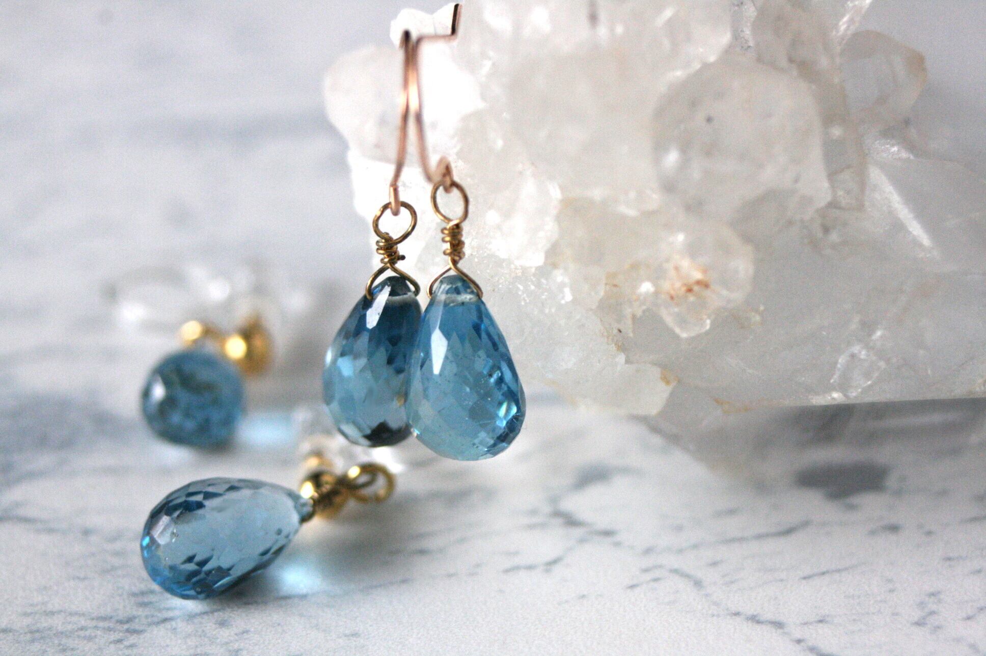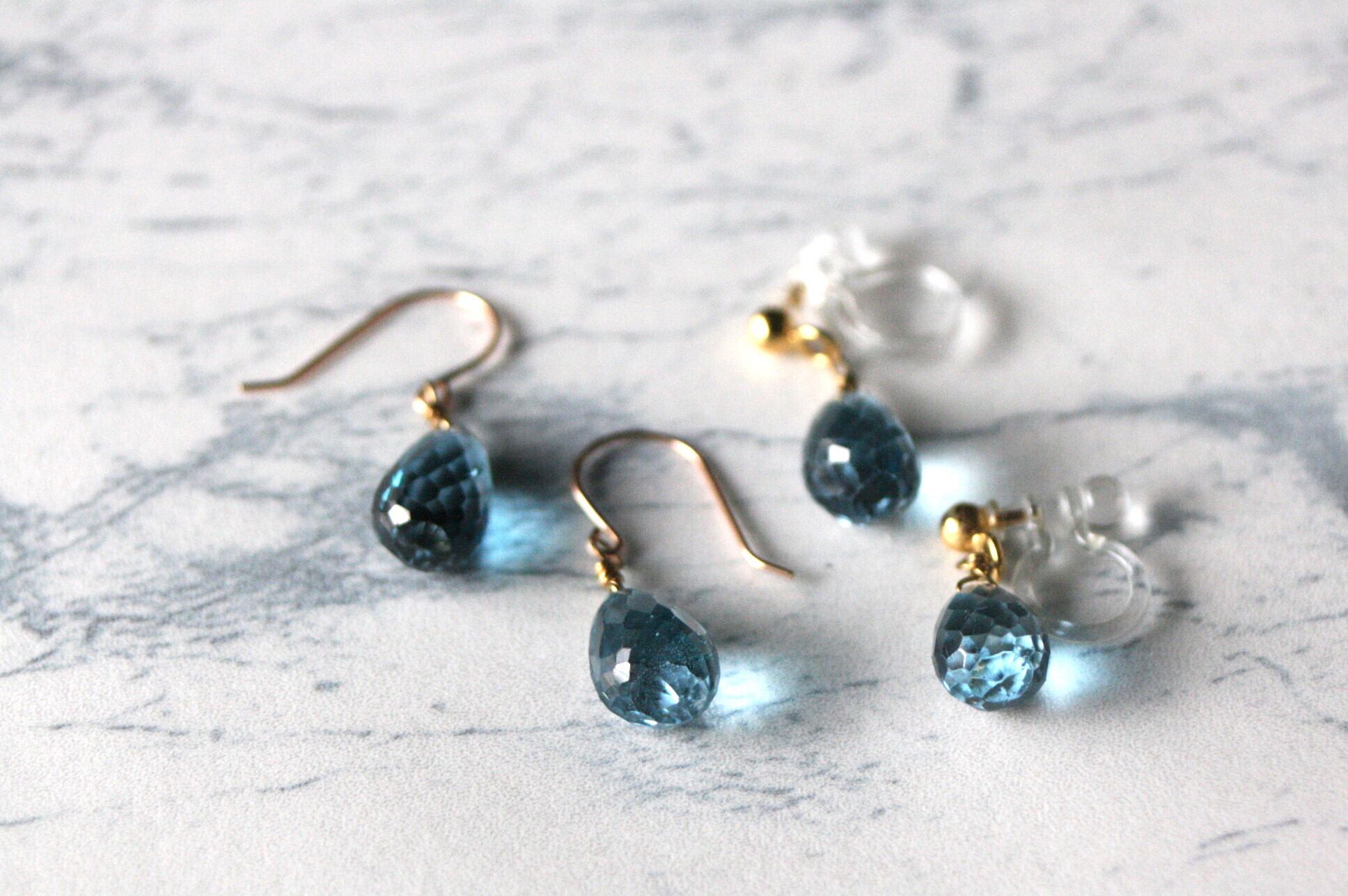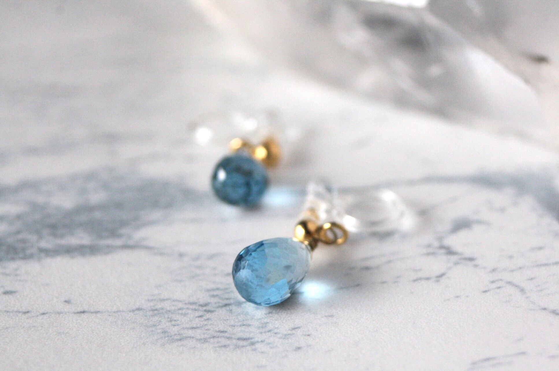 宝石質 天然石 ロンドンブルートパーズ ノンホールピアス 誕生日 クリスマス プレゼント シンプル 結婚式 イヤリング