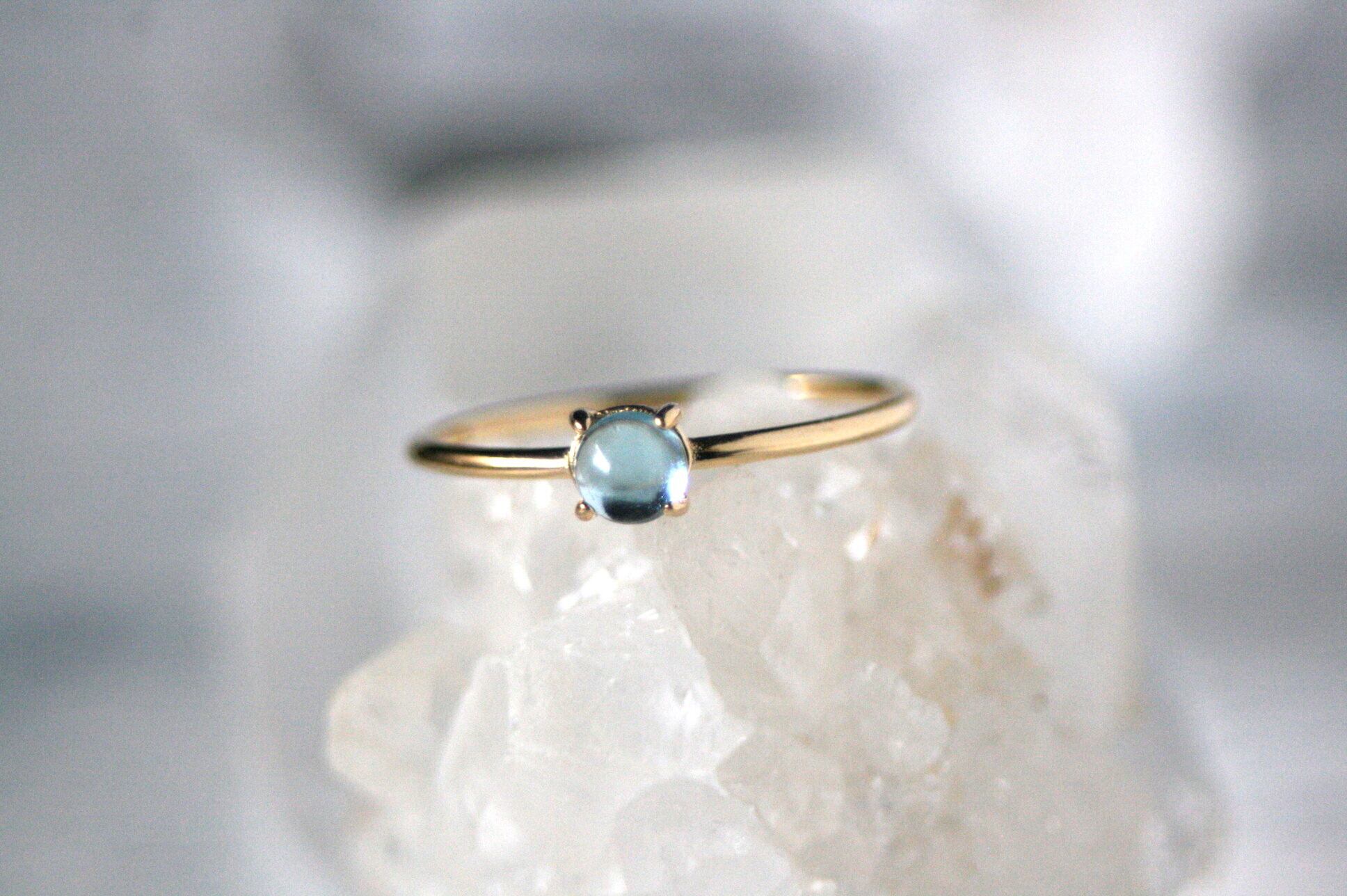 ブルートパーズ*4mm 大粒宝石質 天然石 ゴールドリング 11月誕生石 クリスマス 誕生日 プレゼント ビジュー トパーズ 指輪