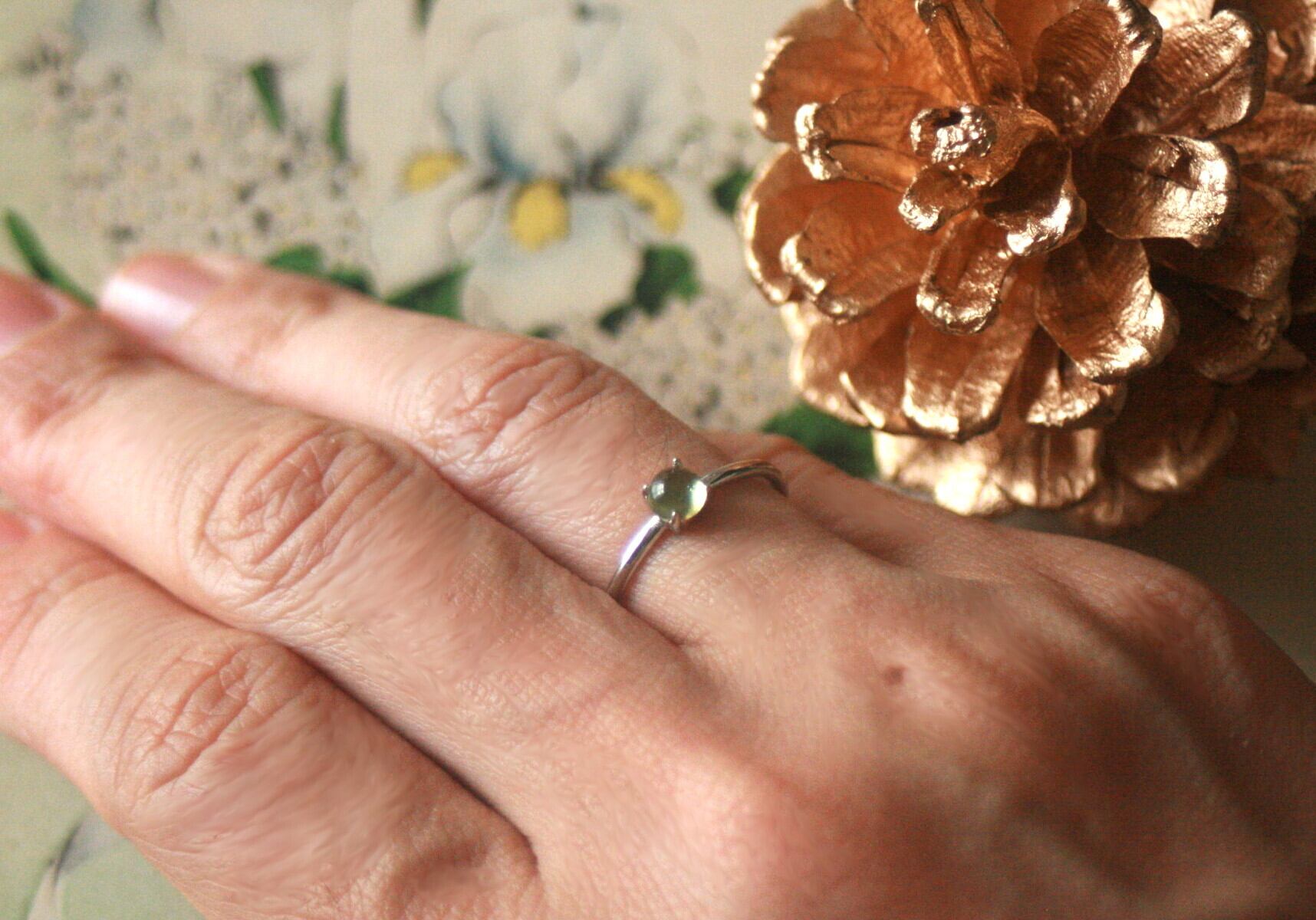 天然石のペリドットのシンプルな一粒リング。