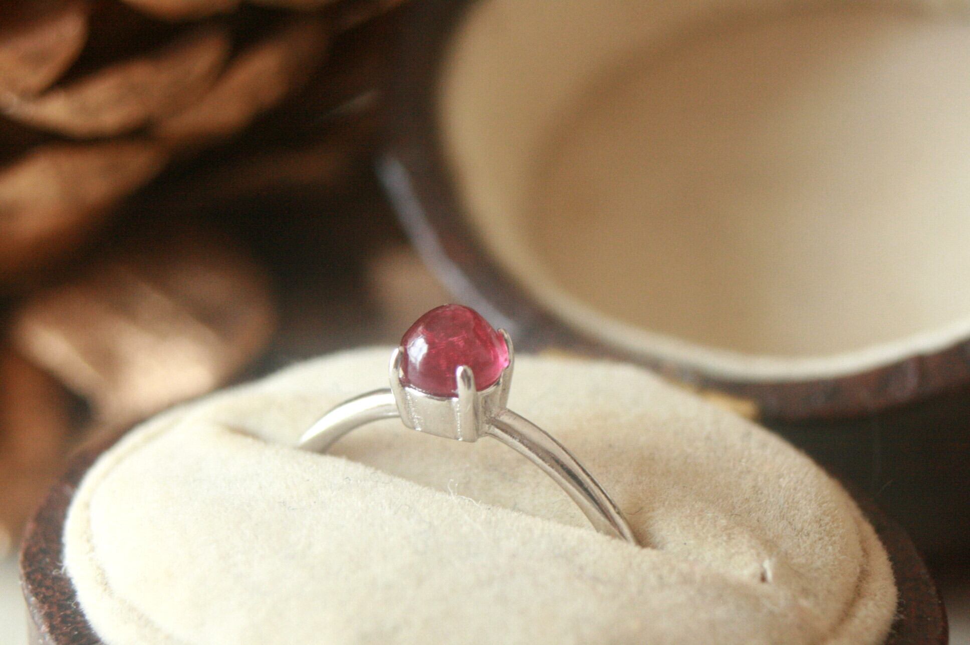 天然石ルビーのシンプルな一粒リング。