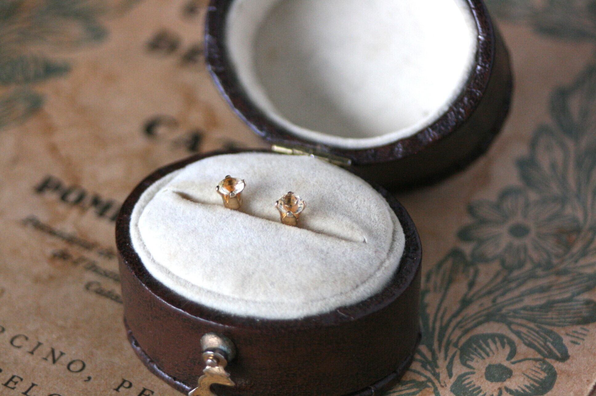 天然石のシトリンのシンプルな一粒ピアス。