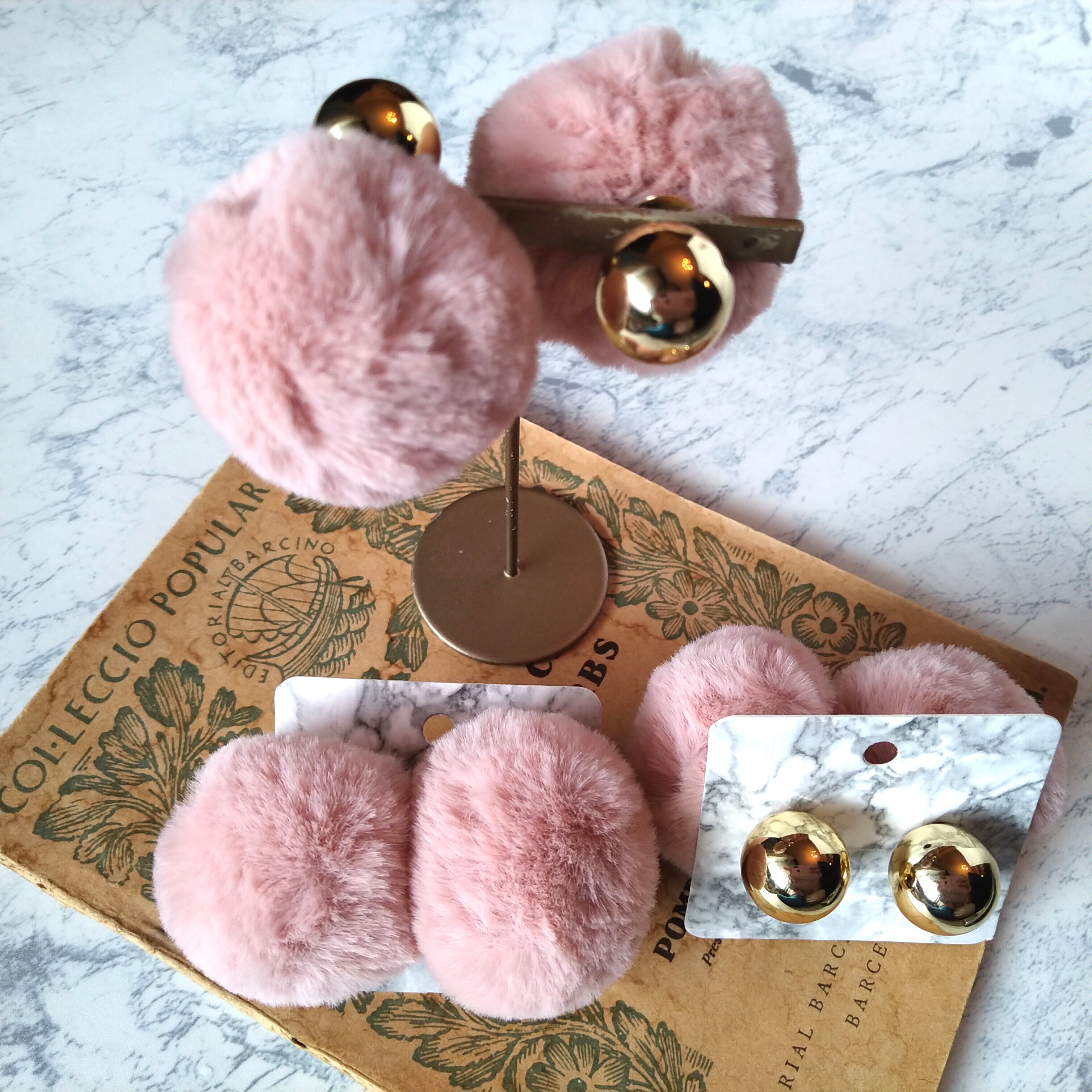 2wayWface エコファーピアス ピンク クリスマス 誕生日 プレゼント ファーピアス もこもこ もふもふ ふわふわ