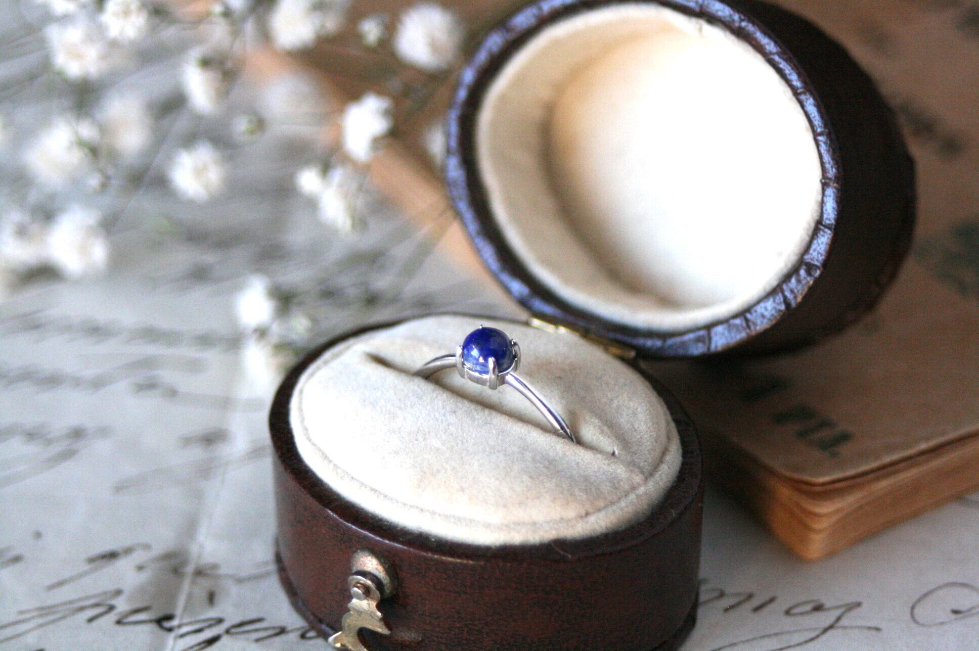 宝石質の天然石ラピスラズリ(ラピス)のルースで作った、シンプルな一粒リング。