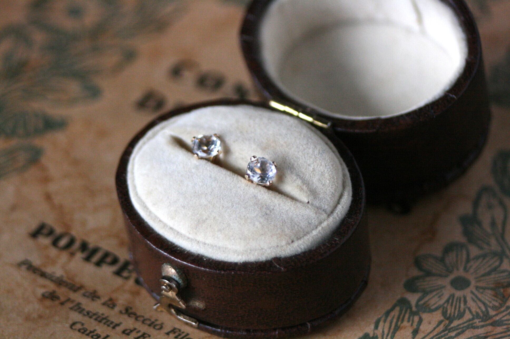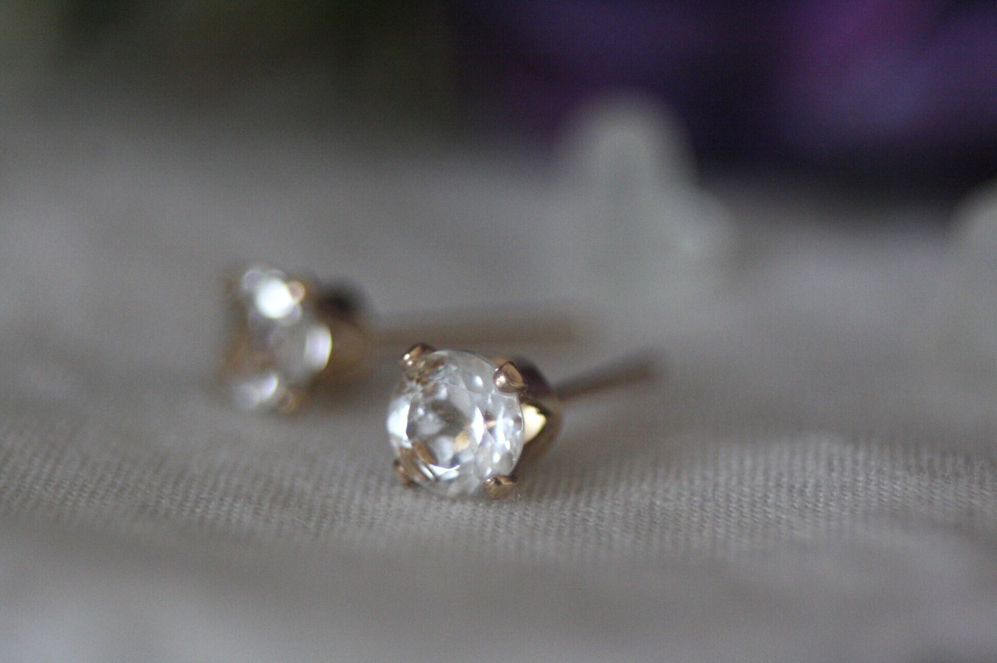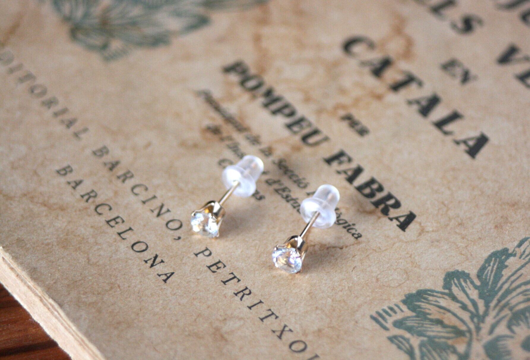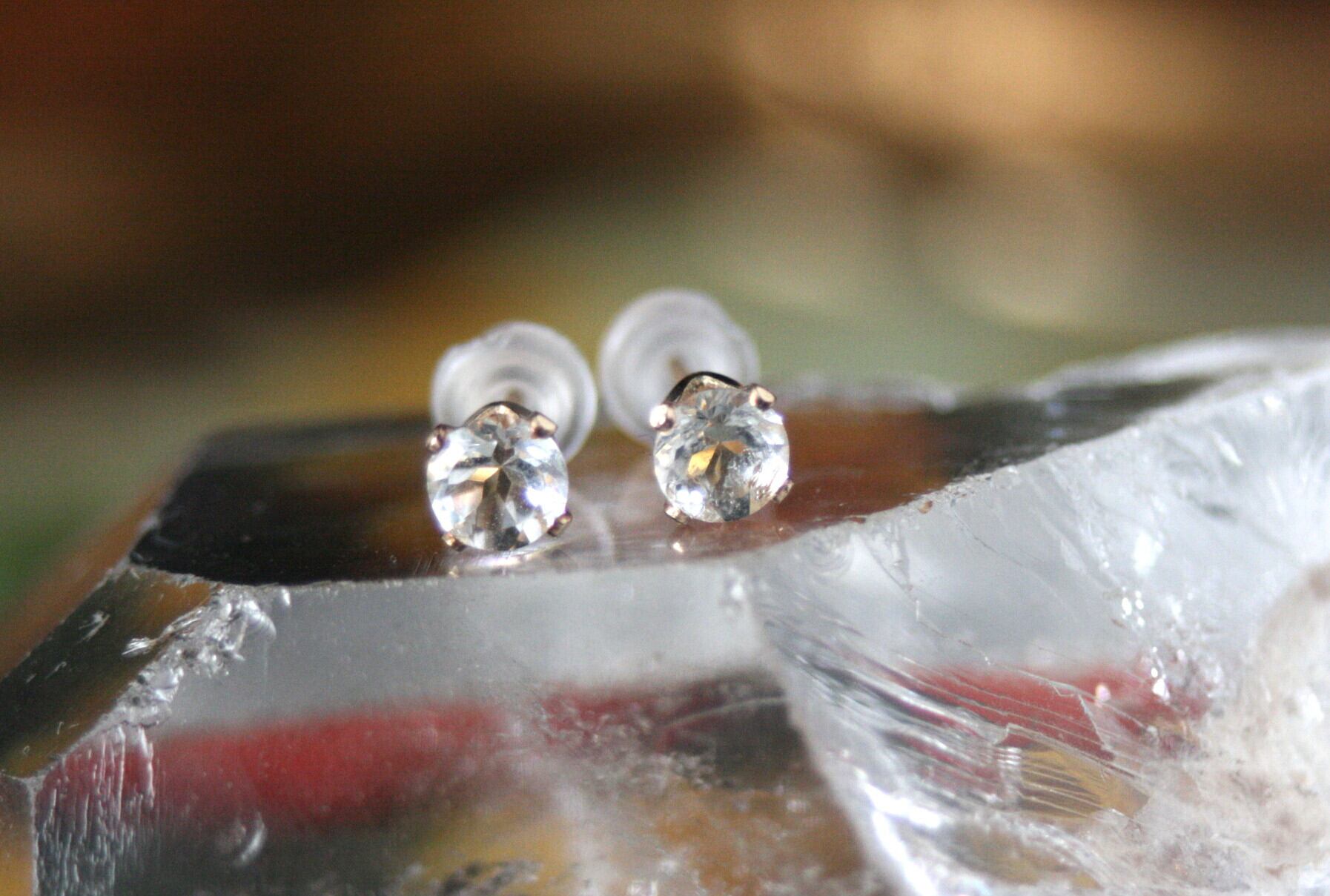 天然石のトパーズ(ホワイトトパーズ)のシンプルな一粒ピアス。