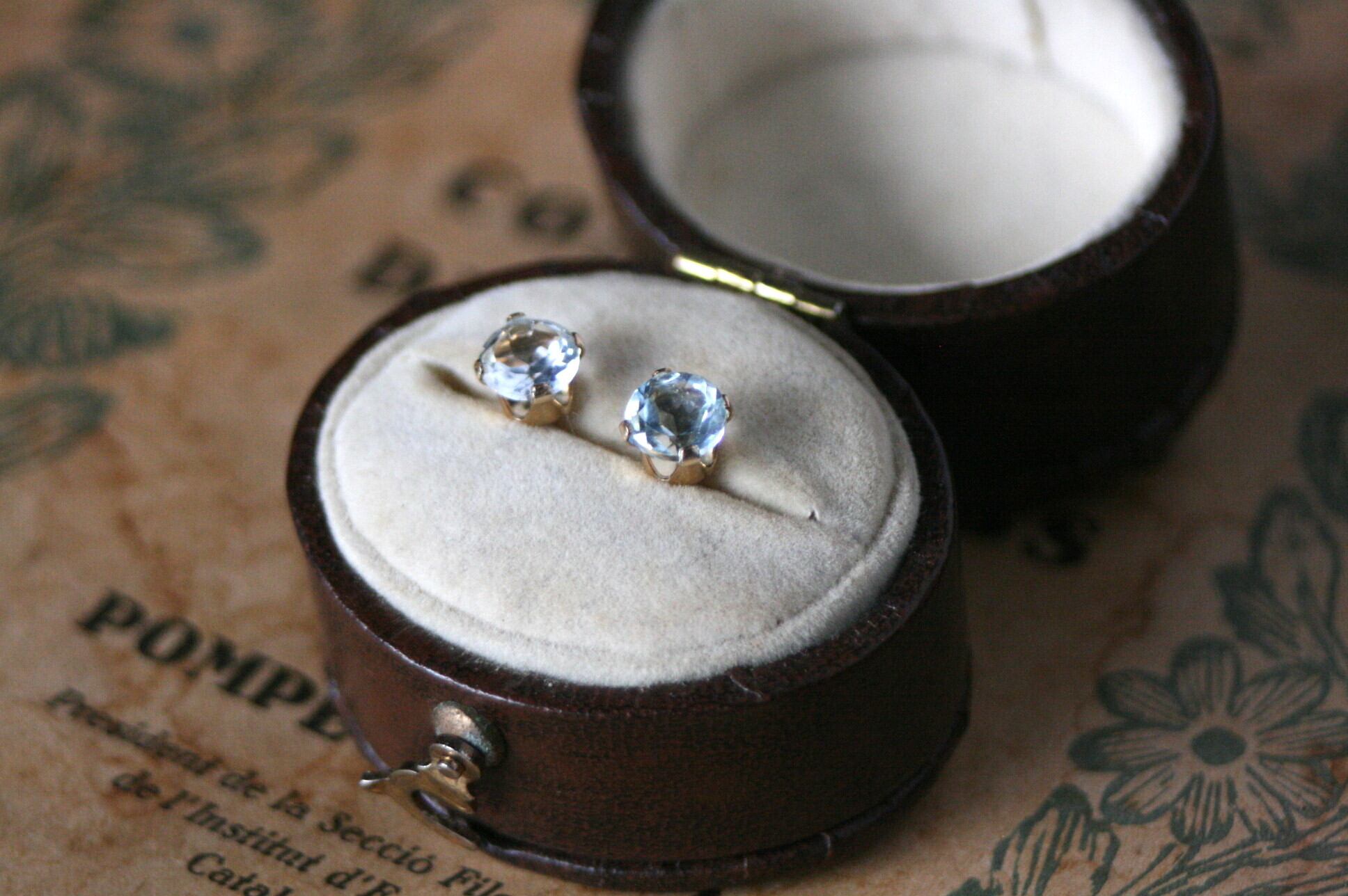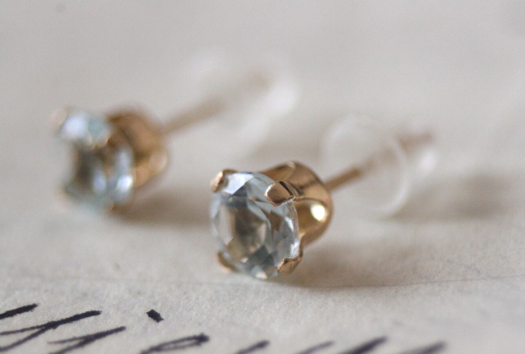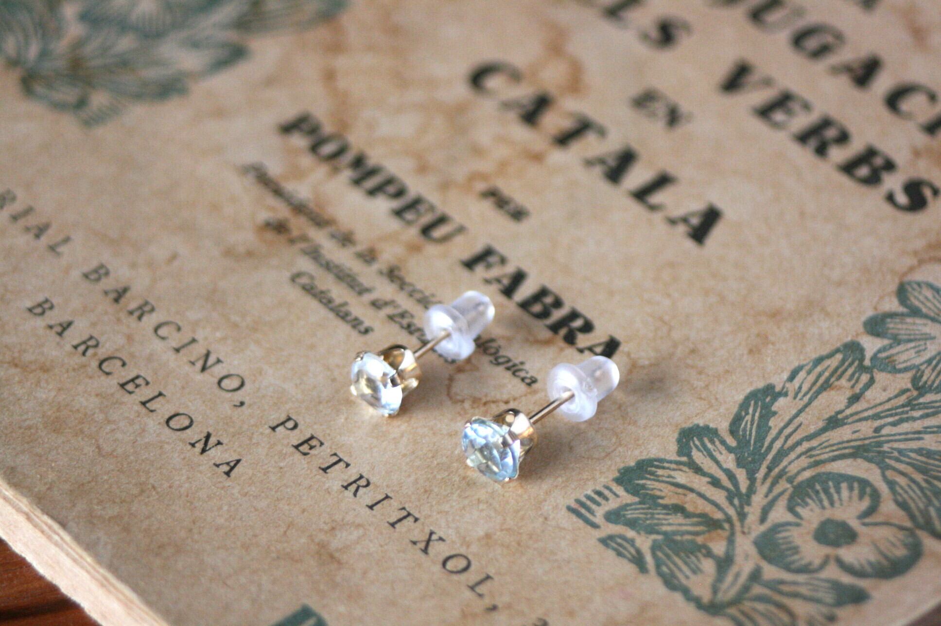 天然石のアクアマリンのシンプルな一粒ピアス。