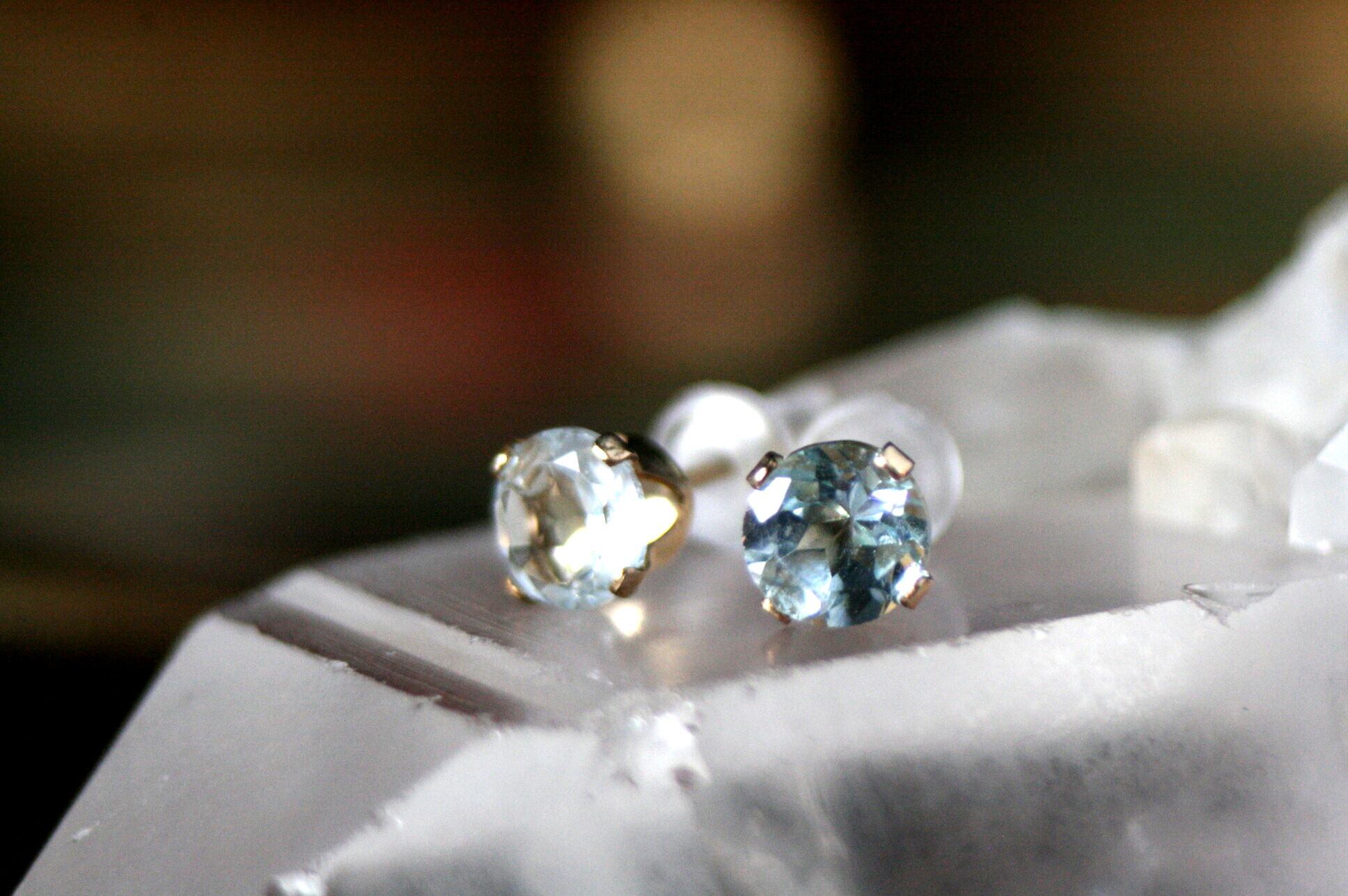 天然石アクアマリンピアスが、