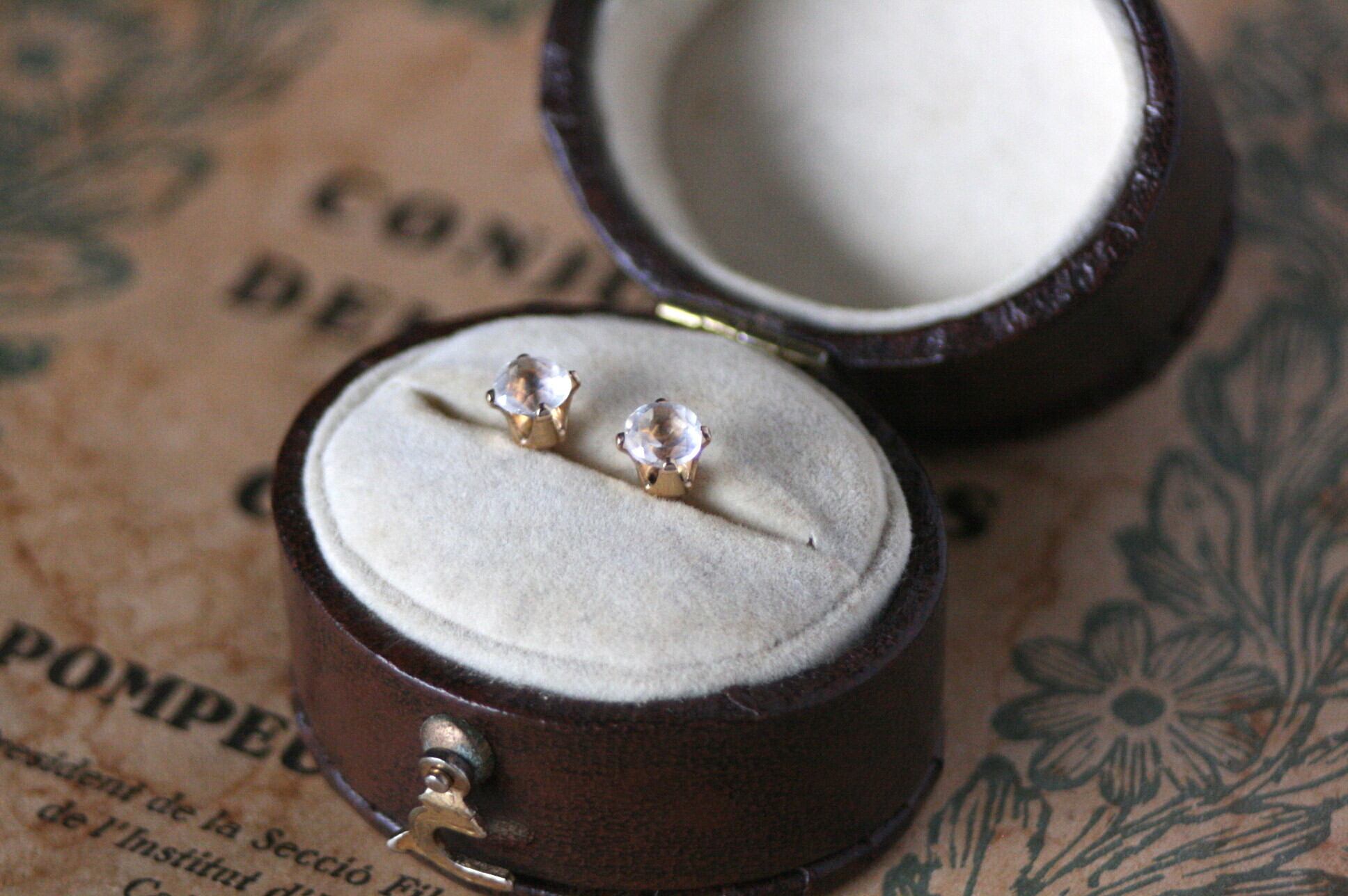 天然石のクオーツのシンプルな一粒ピアス。