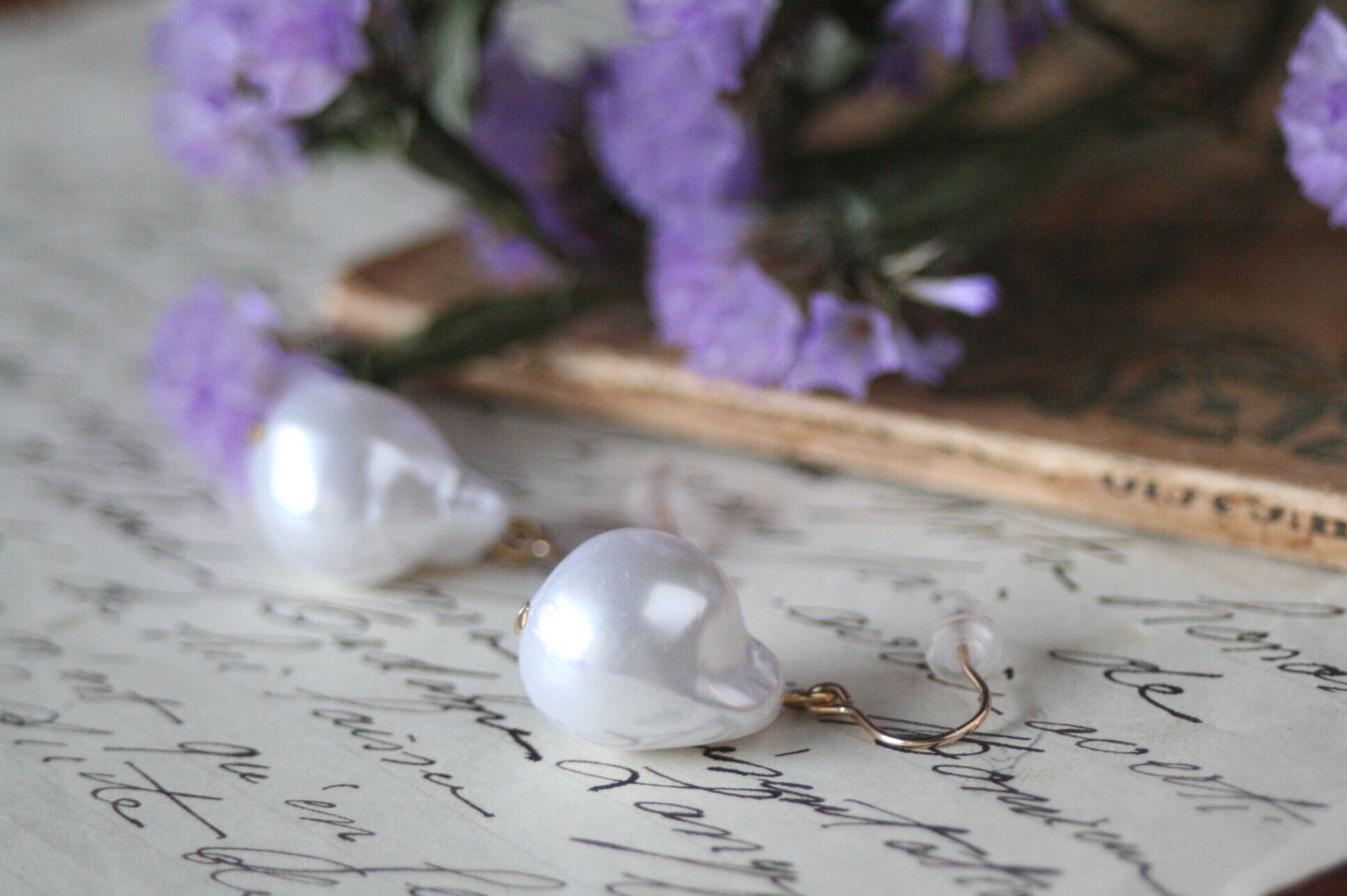 大粒のバロックパールピアス(オイスターパール)をずっと作りたいと思っていましたが、