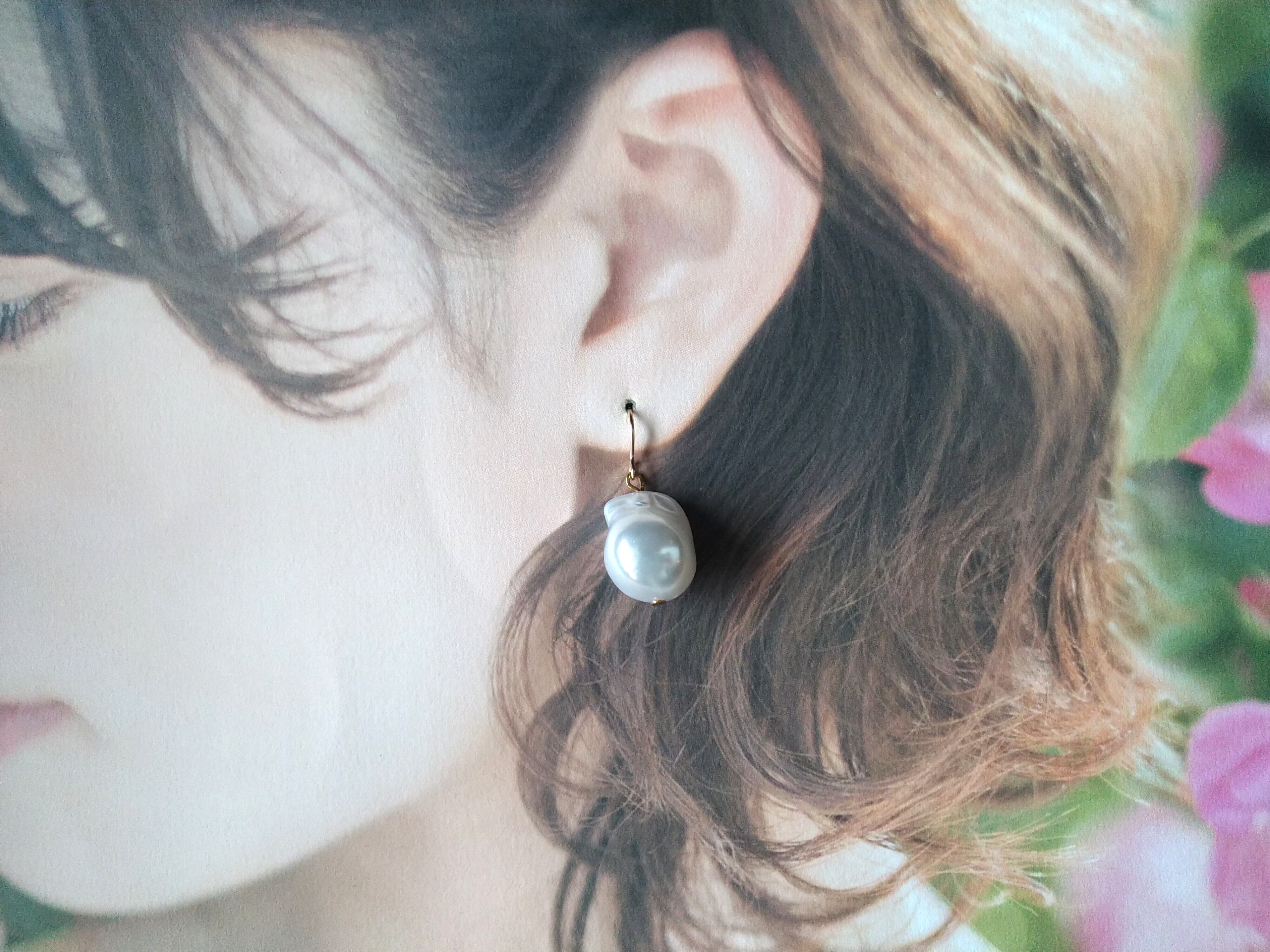 大粒バロックパール(オイスターパール)のシンプルな一粒パールピアス。