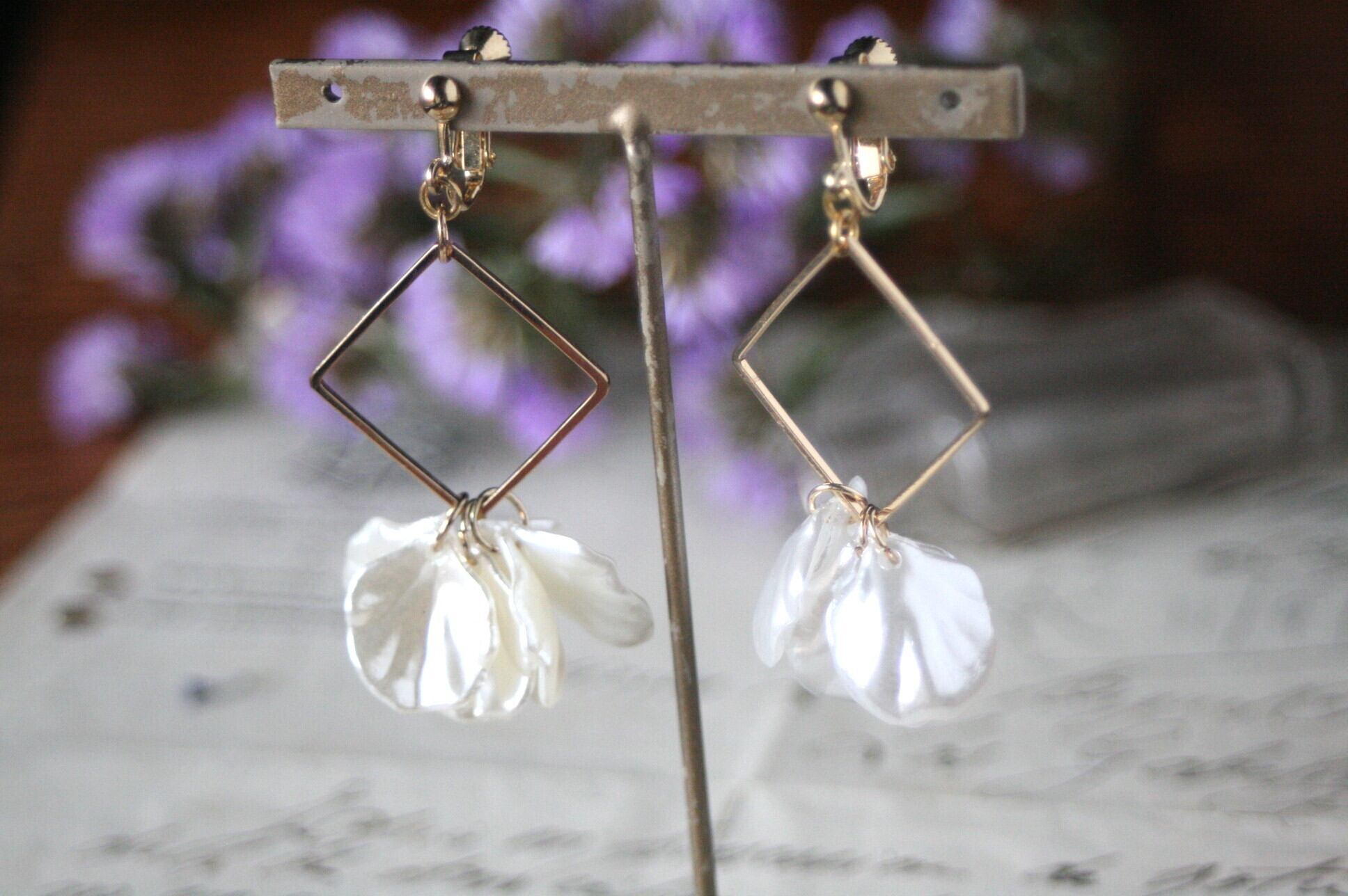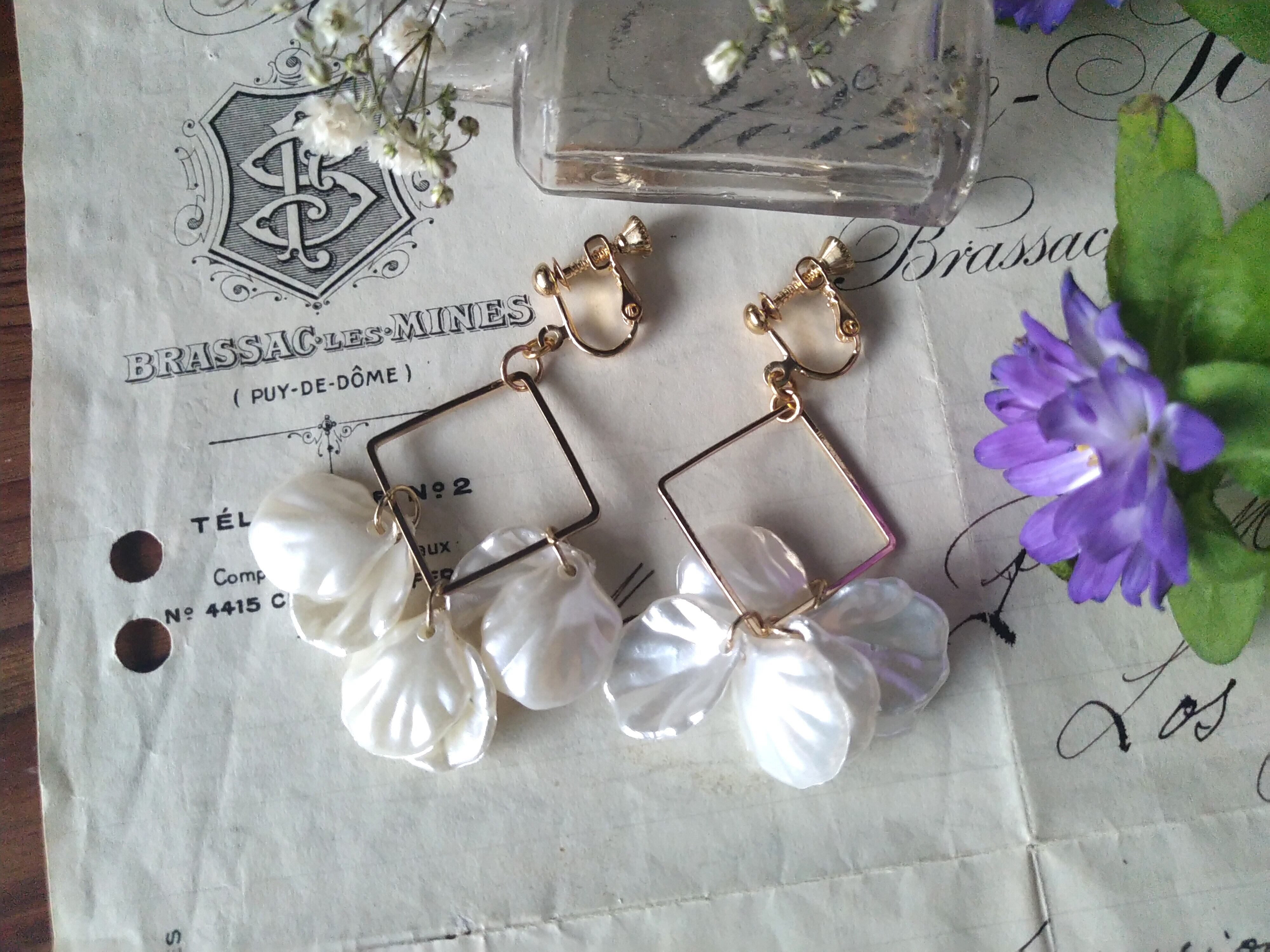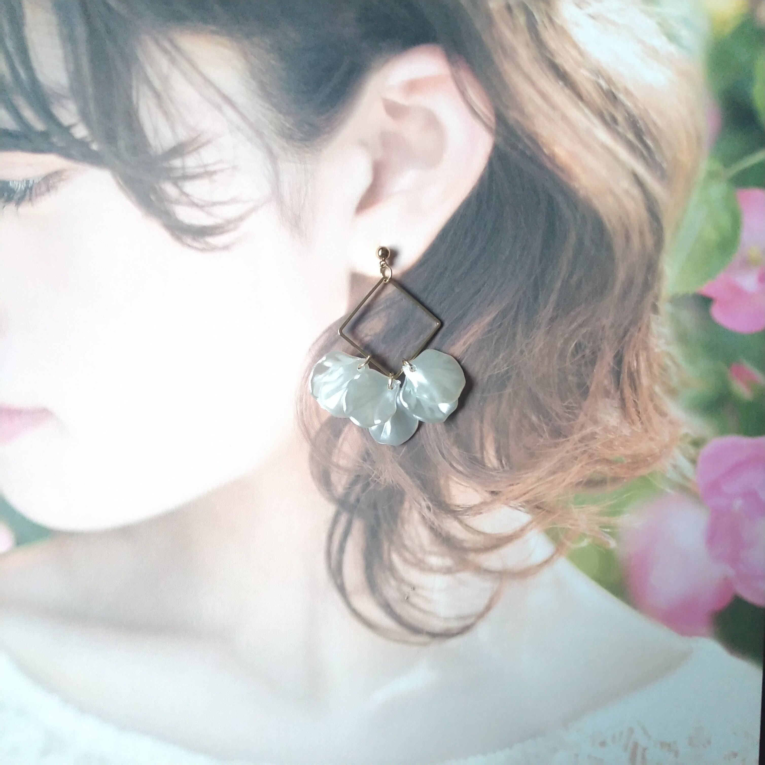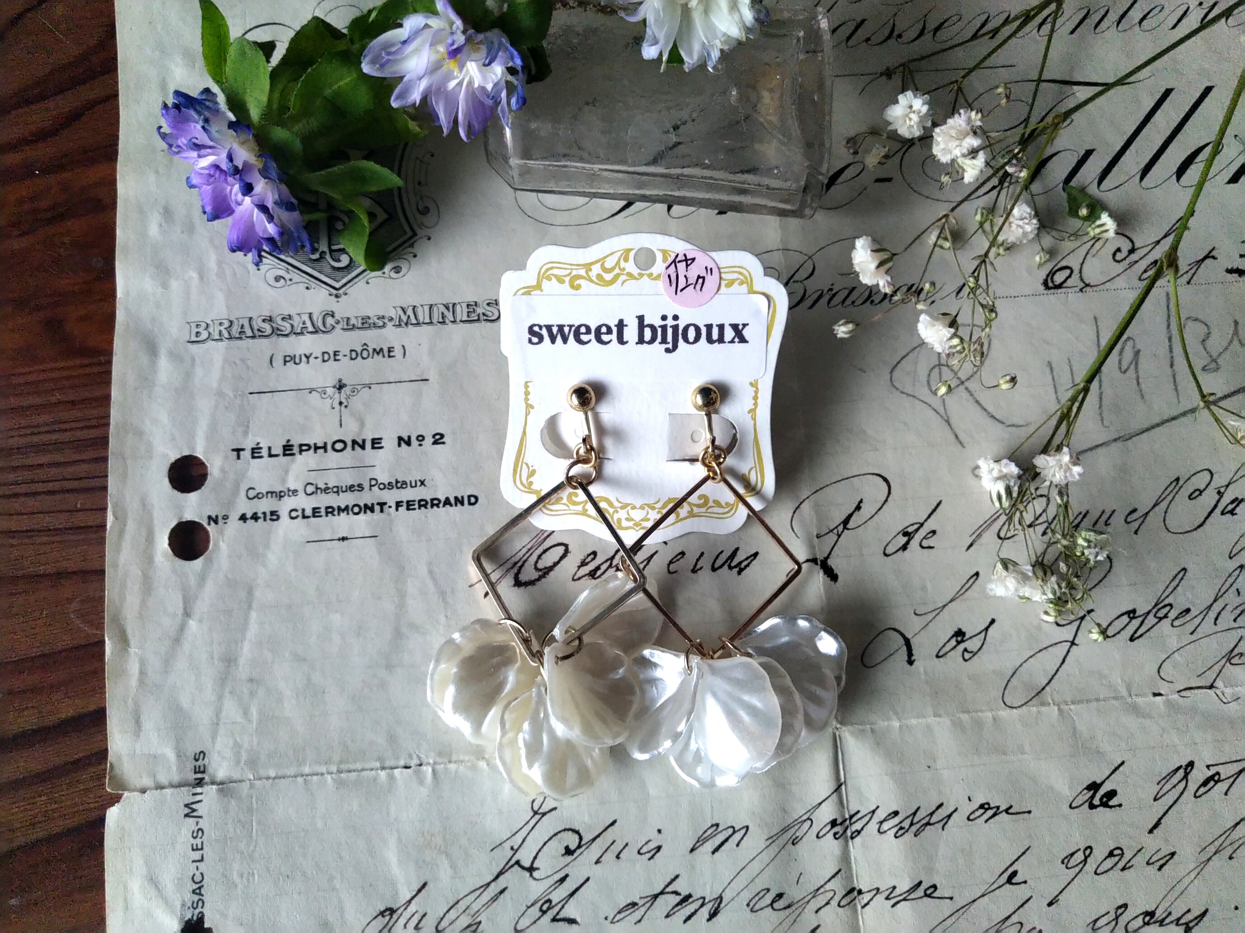 揺れる花びらのようなイメージでシェルとスクエアのパーツでお作りしました。